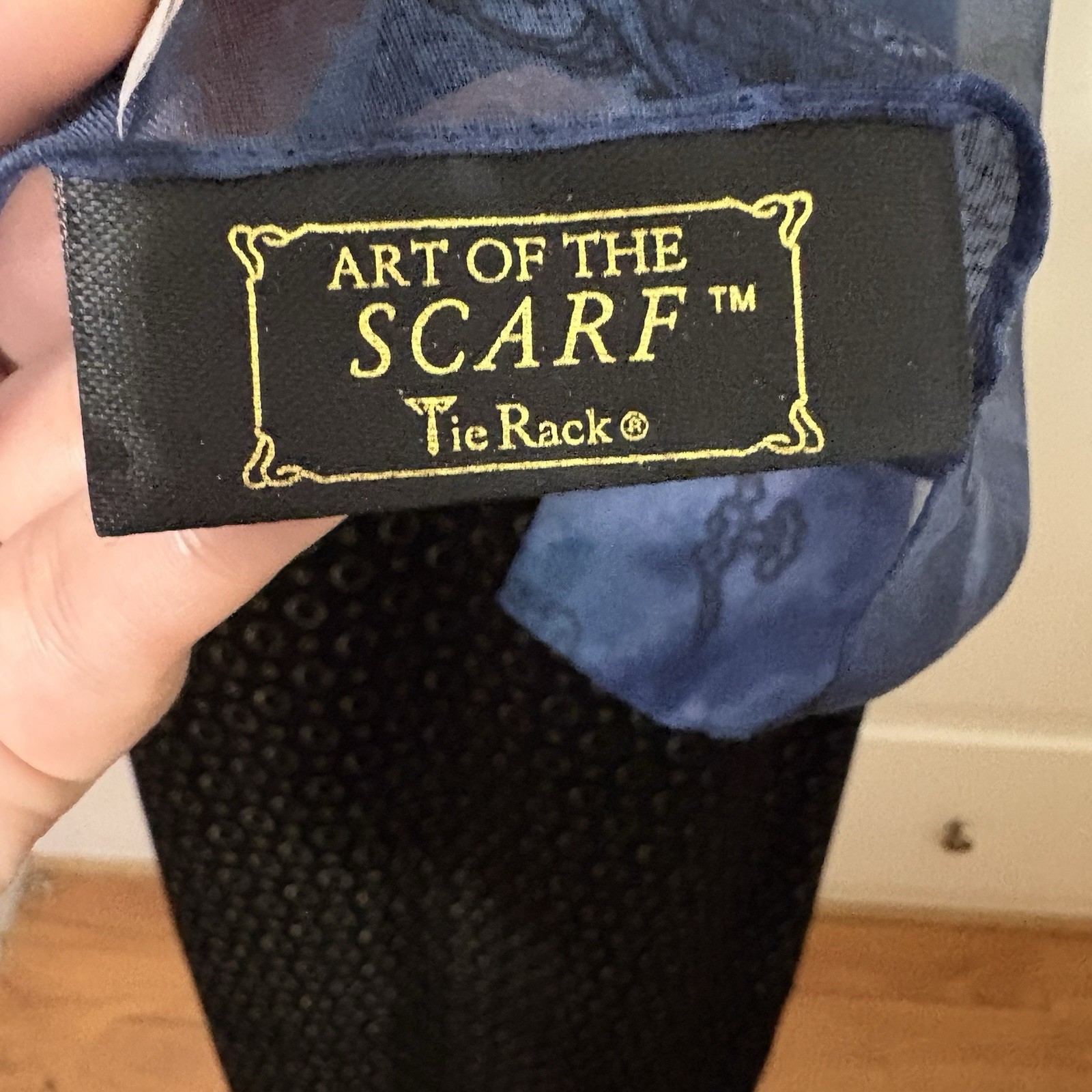 как выглядит Vintage 90s Art of the Scarf Navy Blue Sheer Dragon Print Long Rectangle Scarf фото