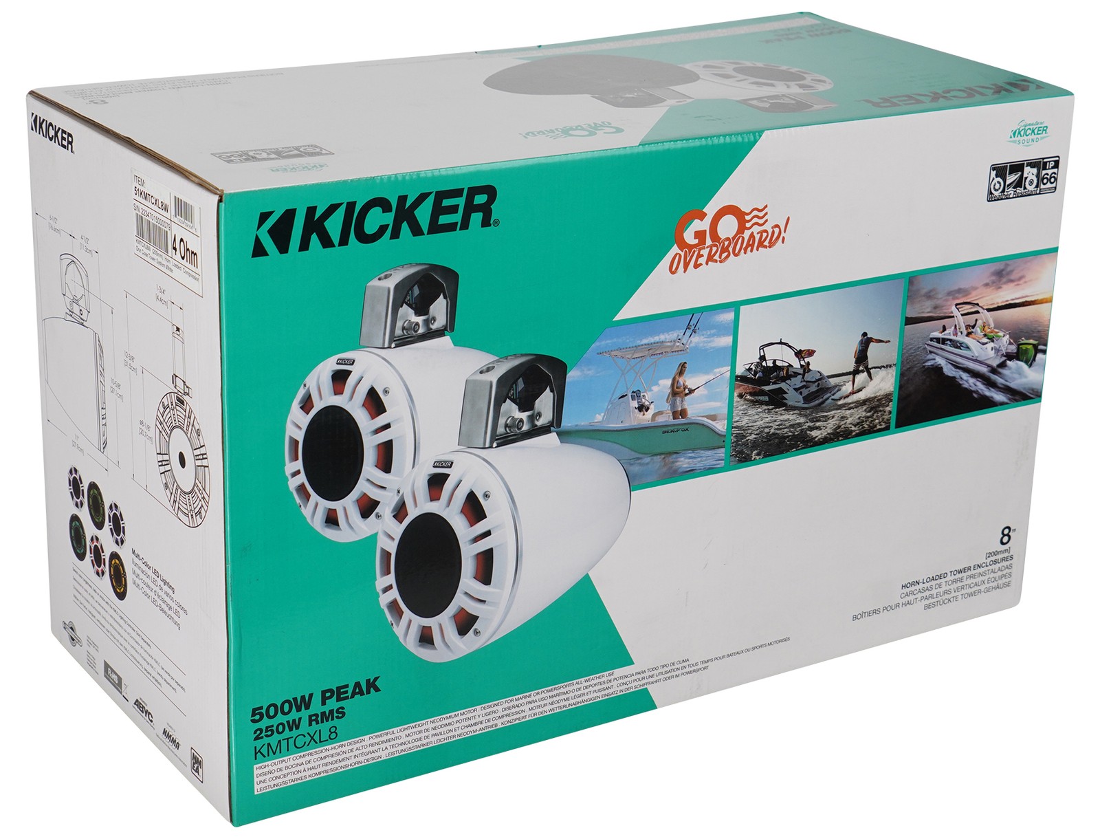 Kicker 51KMTCXL8W White 8 Marine Wakeboard Tower Speakers House Party Speaker