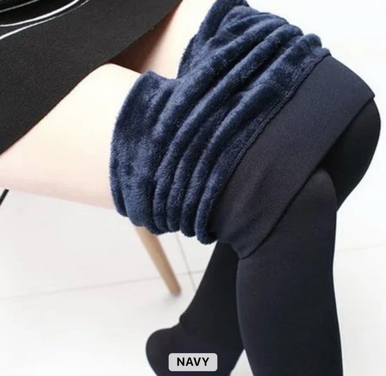 как выглядит 2 Women Thermal Leggings Warm Winter Elastic Fleece Thick Legging Black Navy фото