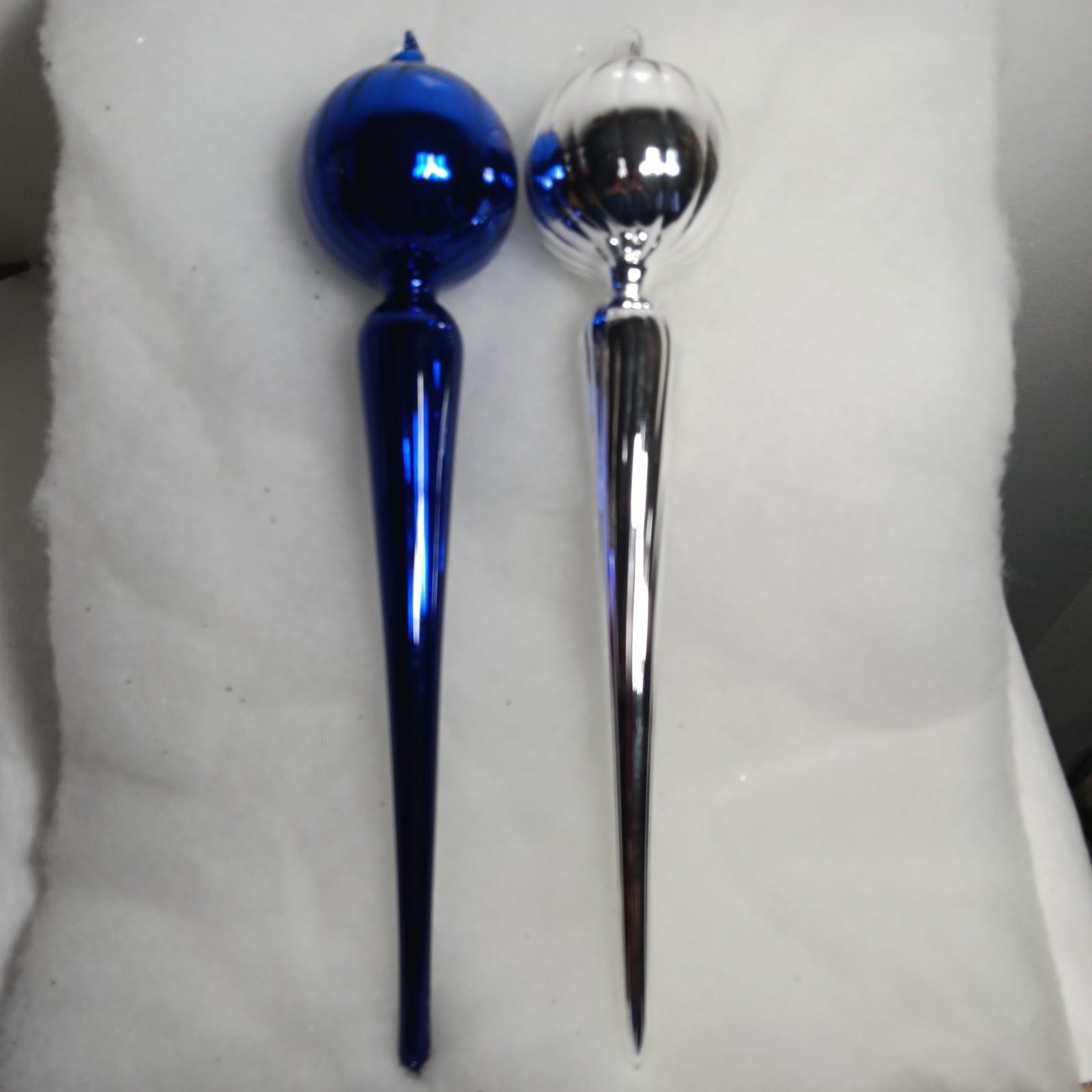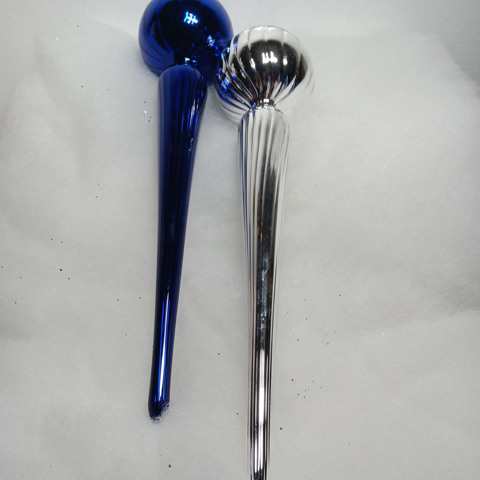2 Beautiful Vtg. 15" Silver And Blue swirl Blown Glass finial teardrop ornaments
