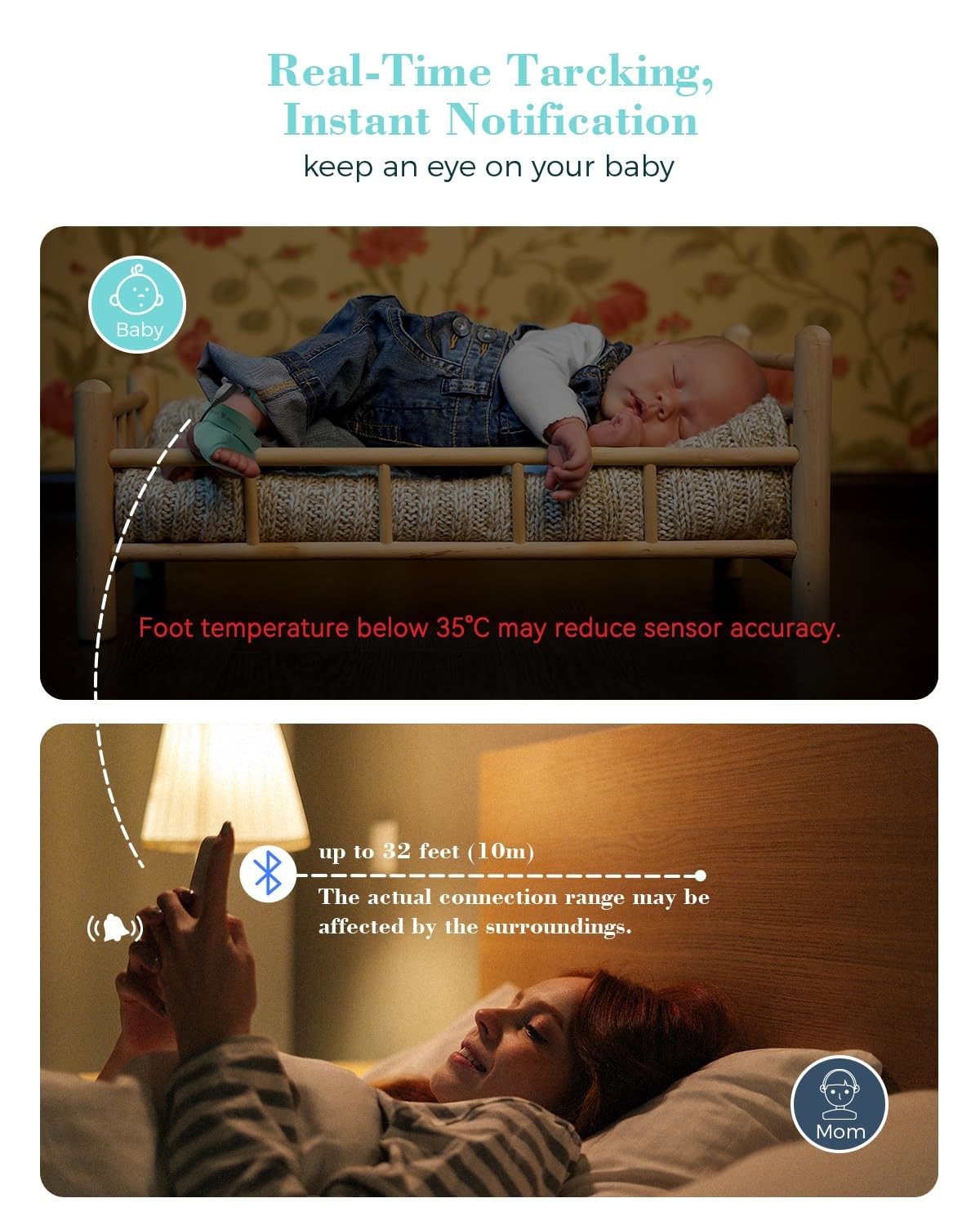 Babytone Baby Sleep Sock Monitor, Tracking Heart Rate and Movement for Infant,
