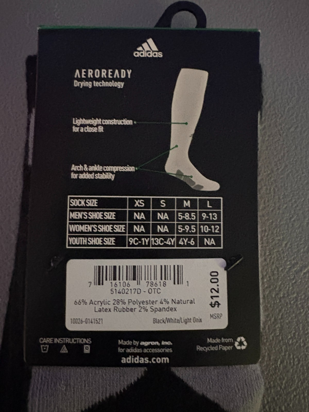 как выглядит Adidas Unisex Utility Multi Sport OTC Socks Size Large Black фото