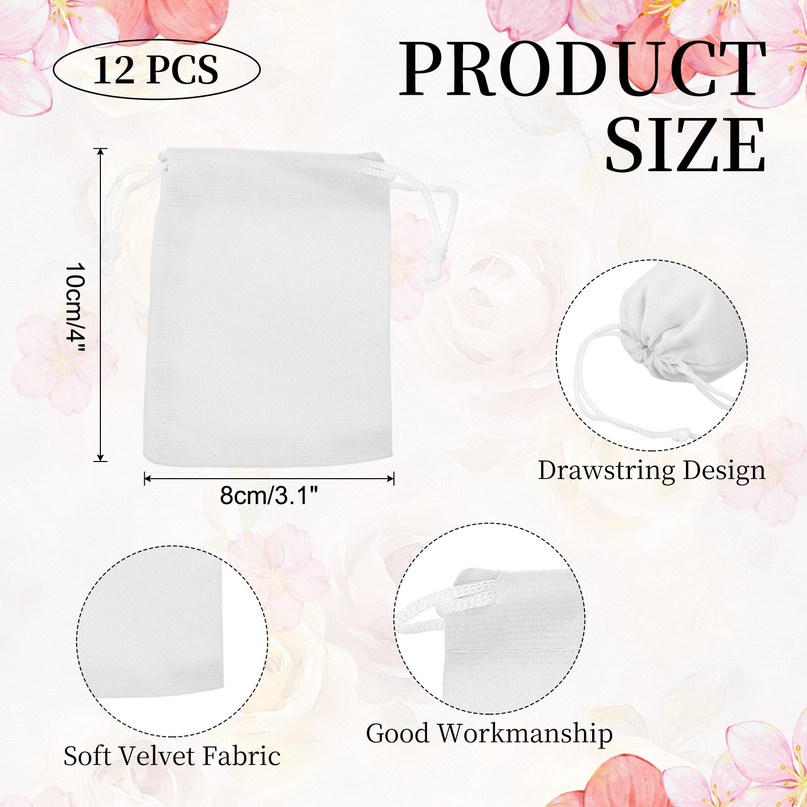 12 Pcs Velvet Drawstring Bag 3.1 x 4 Jewelry Pouches Gift Bags, White