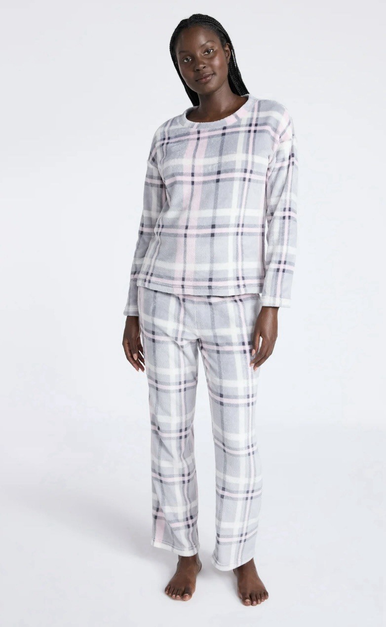 как выглядит Womens Long Sleeve Cozy Pajama Set Top and Pants, Size S фото