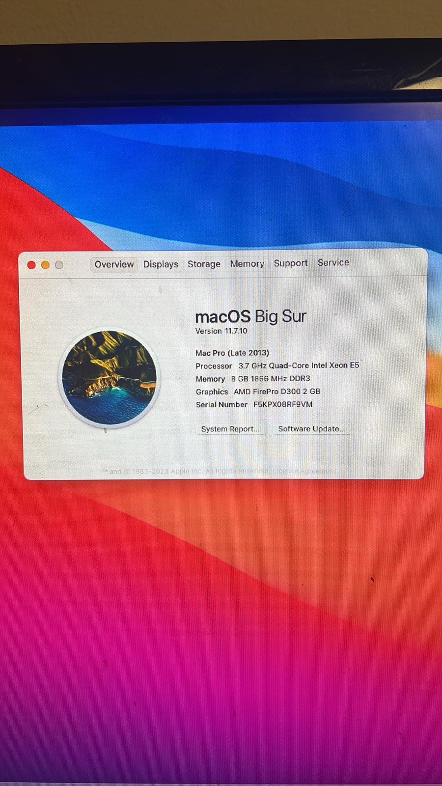 Mac Pro Late 2013 Processor 3.7 GHz Quad-Core Intel Xeon E5 8GB RAM 128 HDD