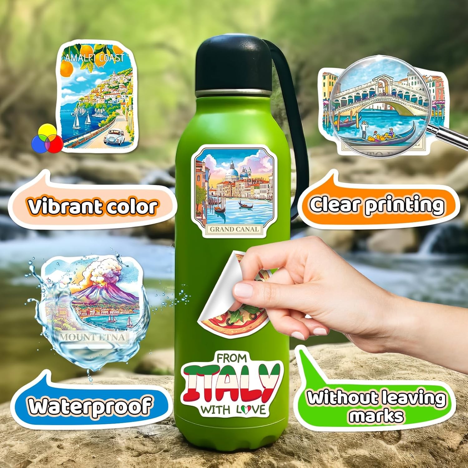 100PCS Italy Stickers, Waterproof Italian Vinyl Stickers Green, White, Red