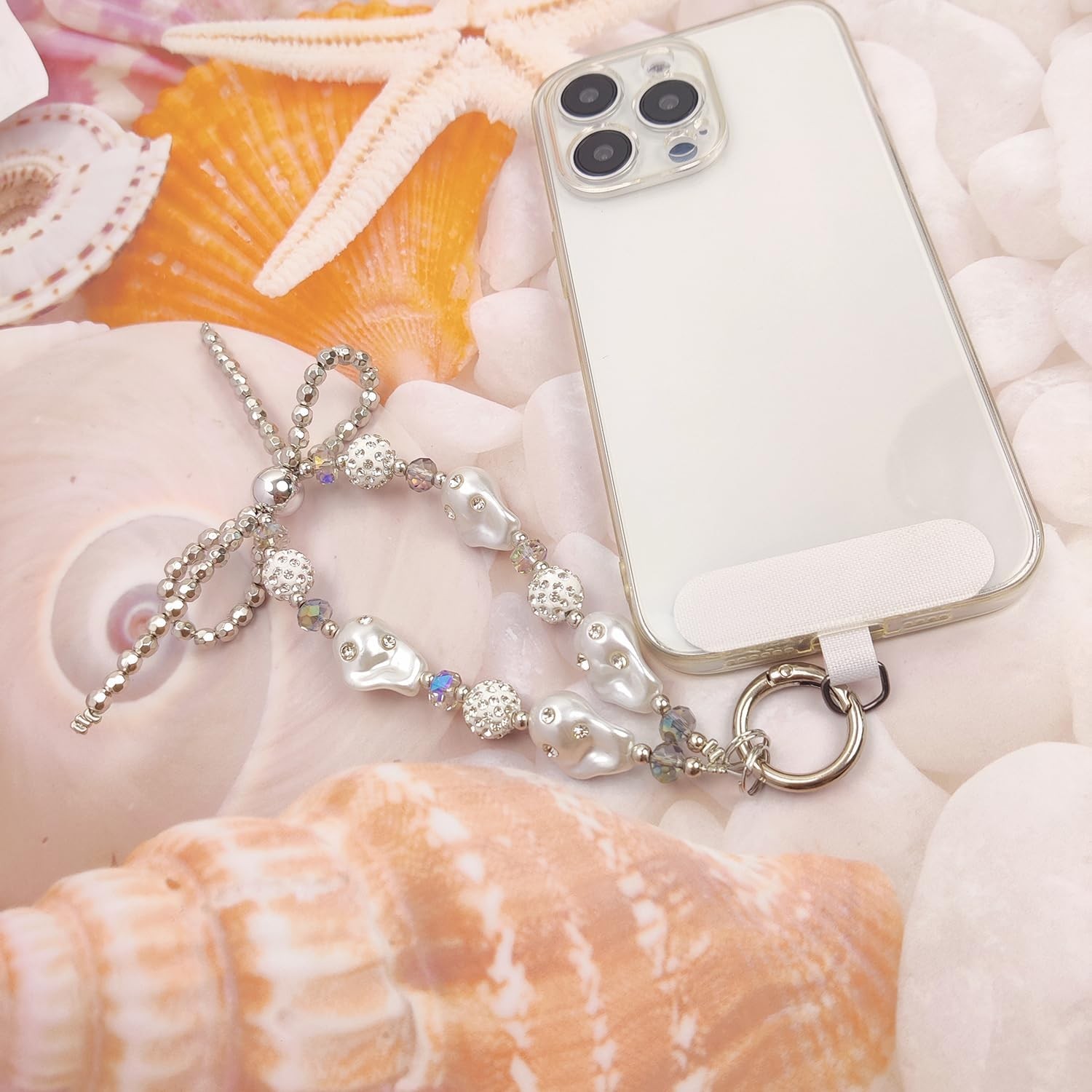 как выглядит Cute Phone Wrist Strap Chic Beaded Cellphone Lanyard with Silver Pearls фото