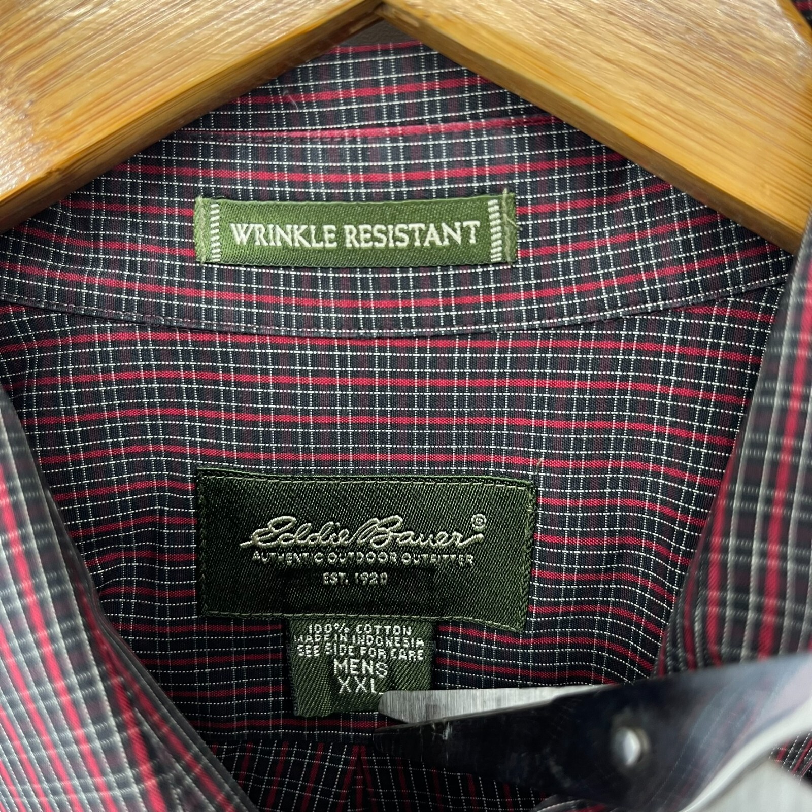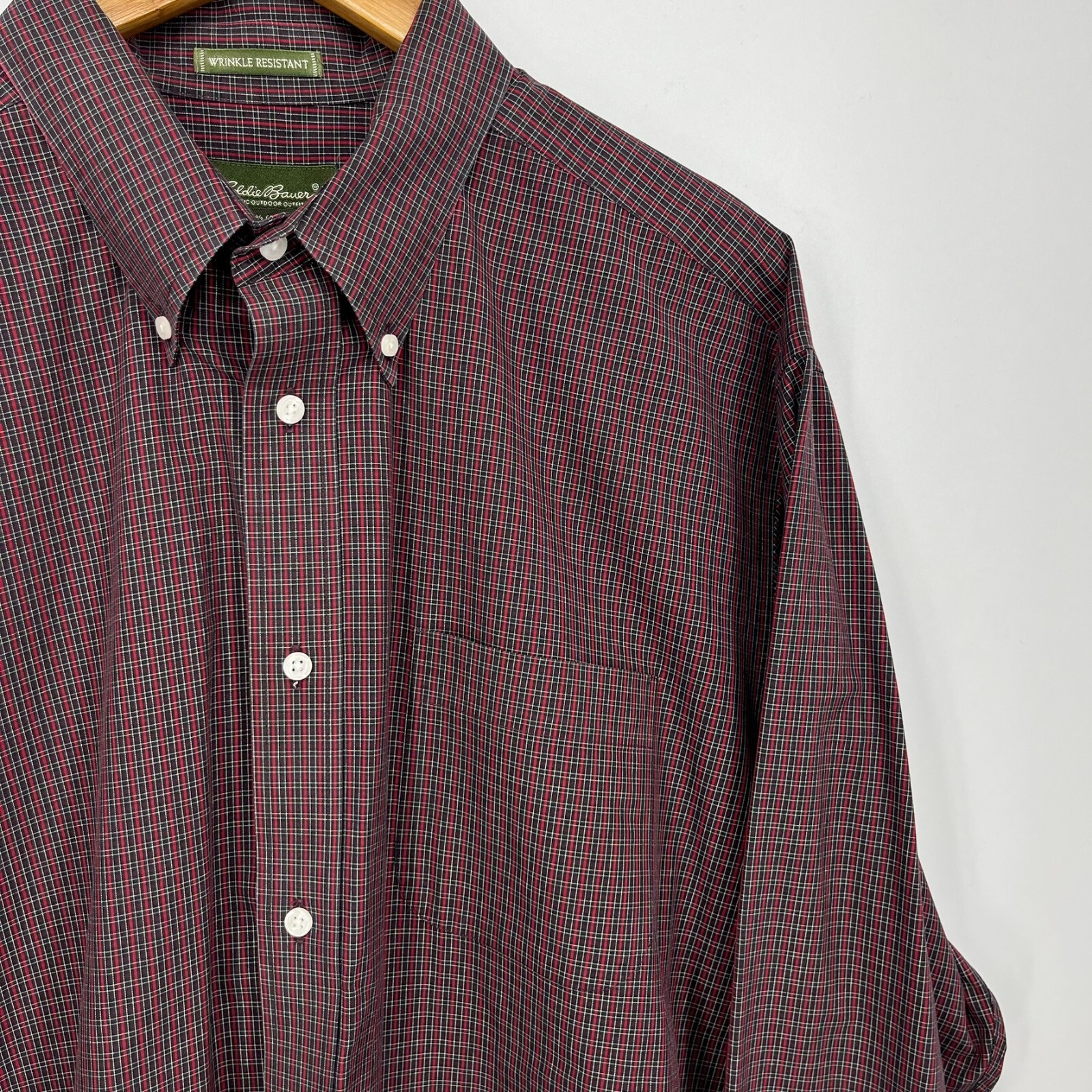 Eddie Bauer Long Sleeve Button Shirt Men's 2XL Red Check Print Wrinkle Resistant