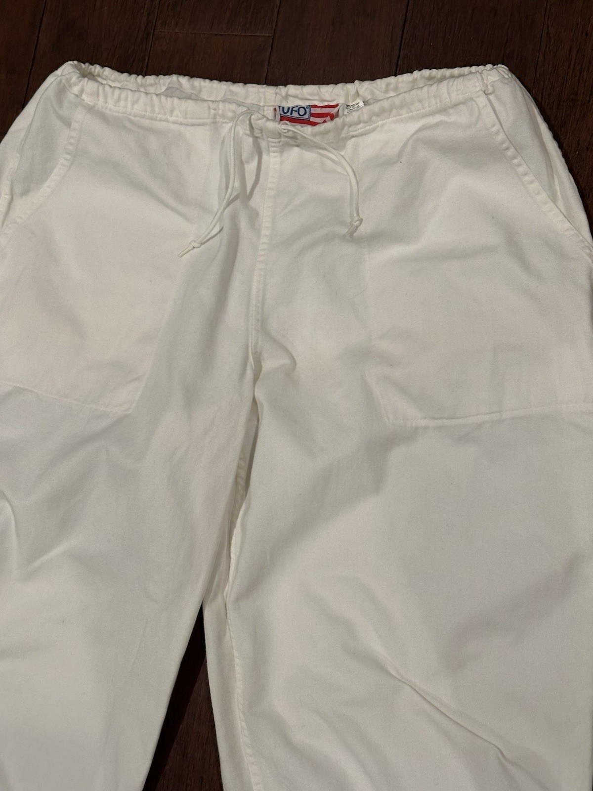 как выглядит Vintage UFO Parachute Pants White OSFA Made in USA Drawstring 31 Inseam фото