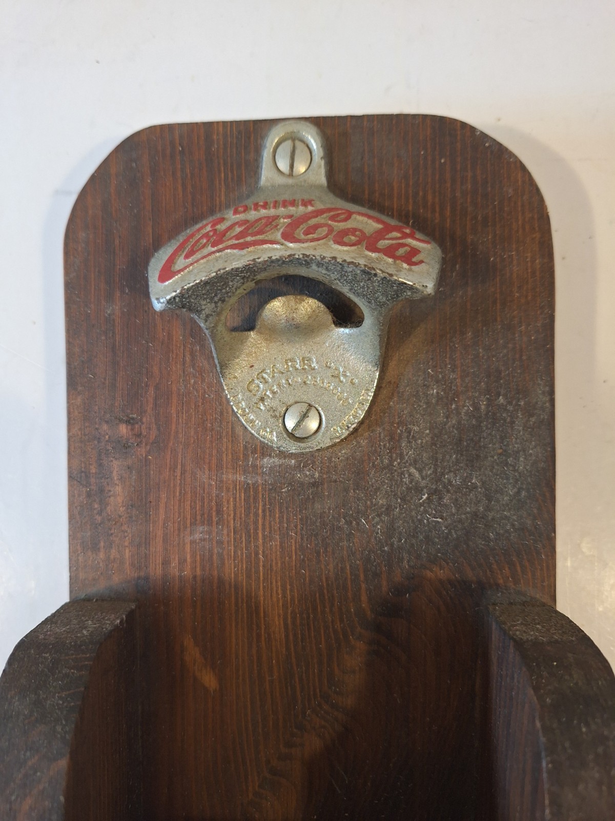 как выглядит Vintage Coca Cola Bottle Opener With Handmade Wooden Catch Tray фото