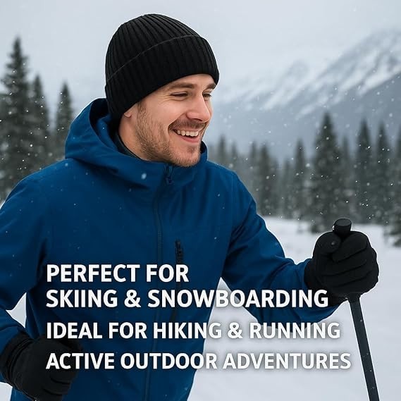 Oversized XL XXL Unisex Merino Wool Beanie with Fleece Lining Cold Weather Wi...