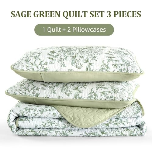 WONGS BDEEING Quilt Full Size Quilt Bedding Set with Full 78W 90H Sage Green