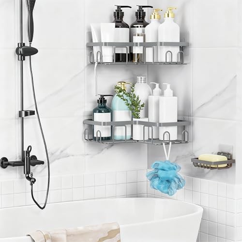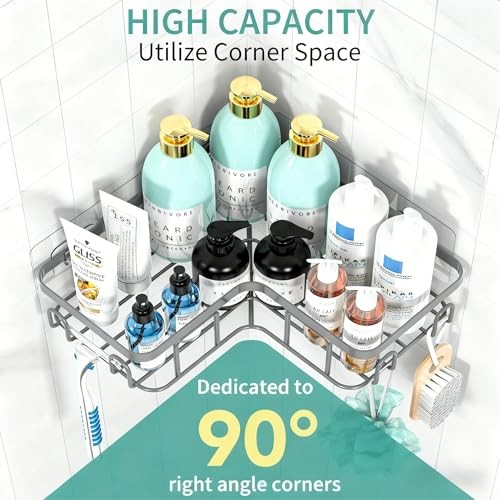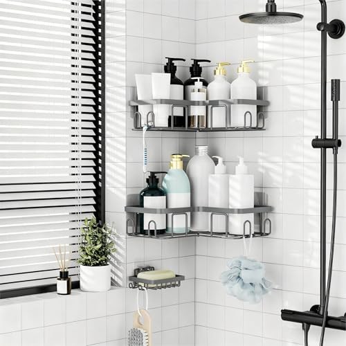 Corner Shower Caddy Shelf Organizer Rack, Self Adhesive Black Bathroom Grey
