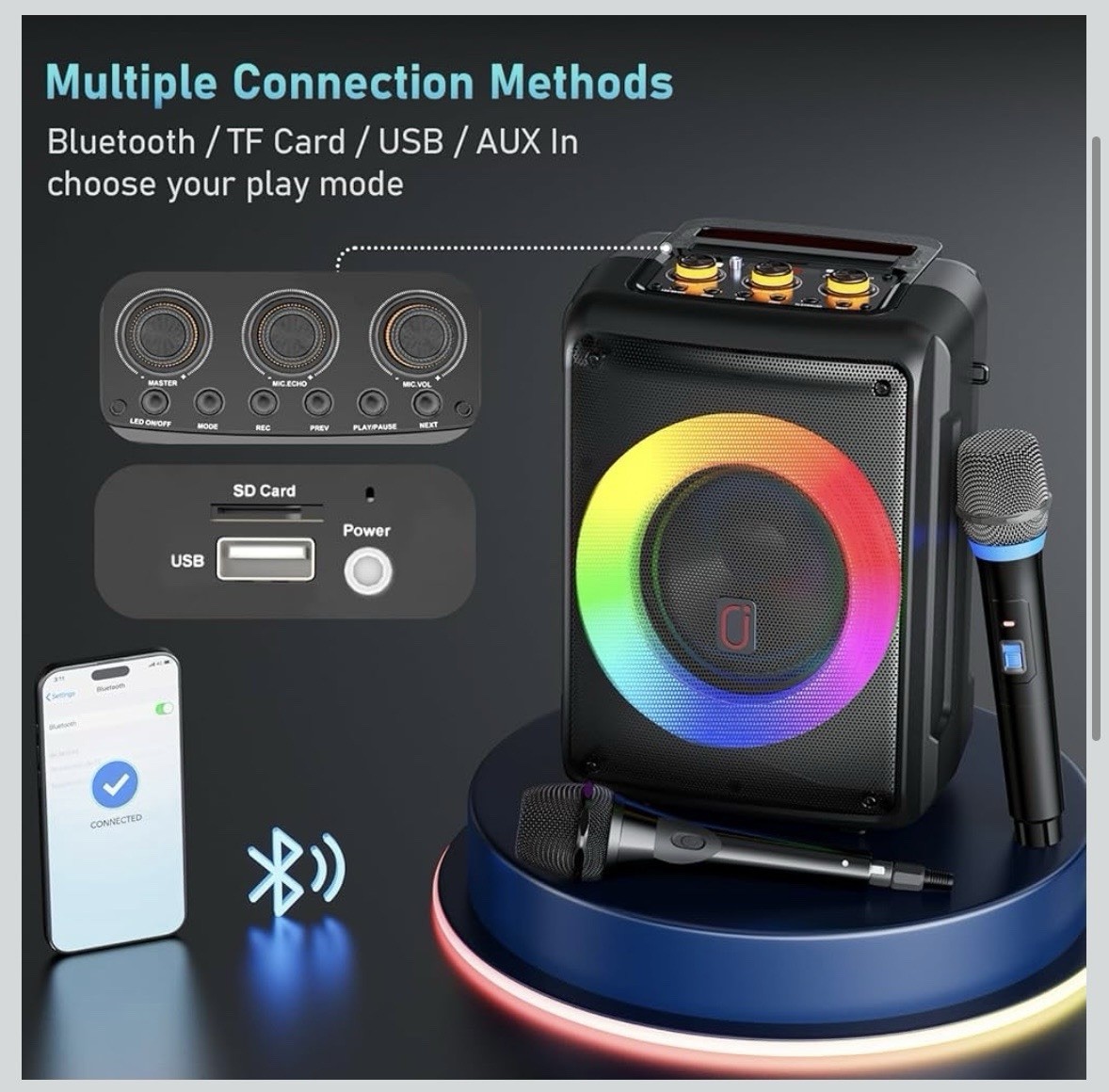 как выглядит Karaoke Machine with 2 Microphones, Portable Bluetooth 5.3 Karaoke Speaker фото