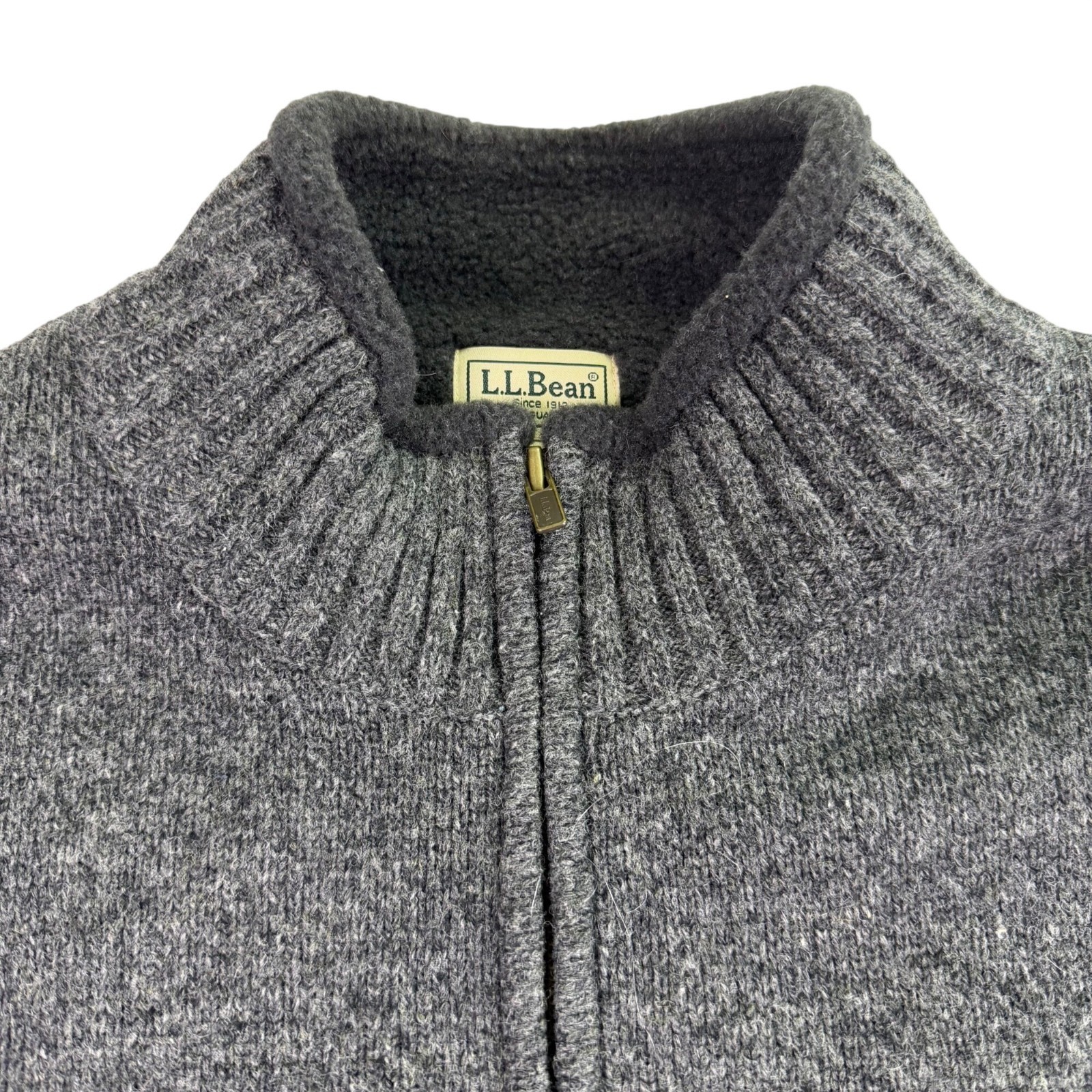 как выглядит L.L.Bean Mens Gray Lambswool Quarter-Zip Sweater Ribbed Trim Warm Classic Sz L фото