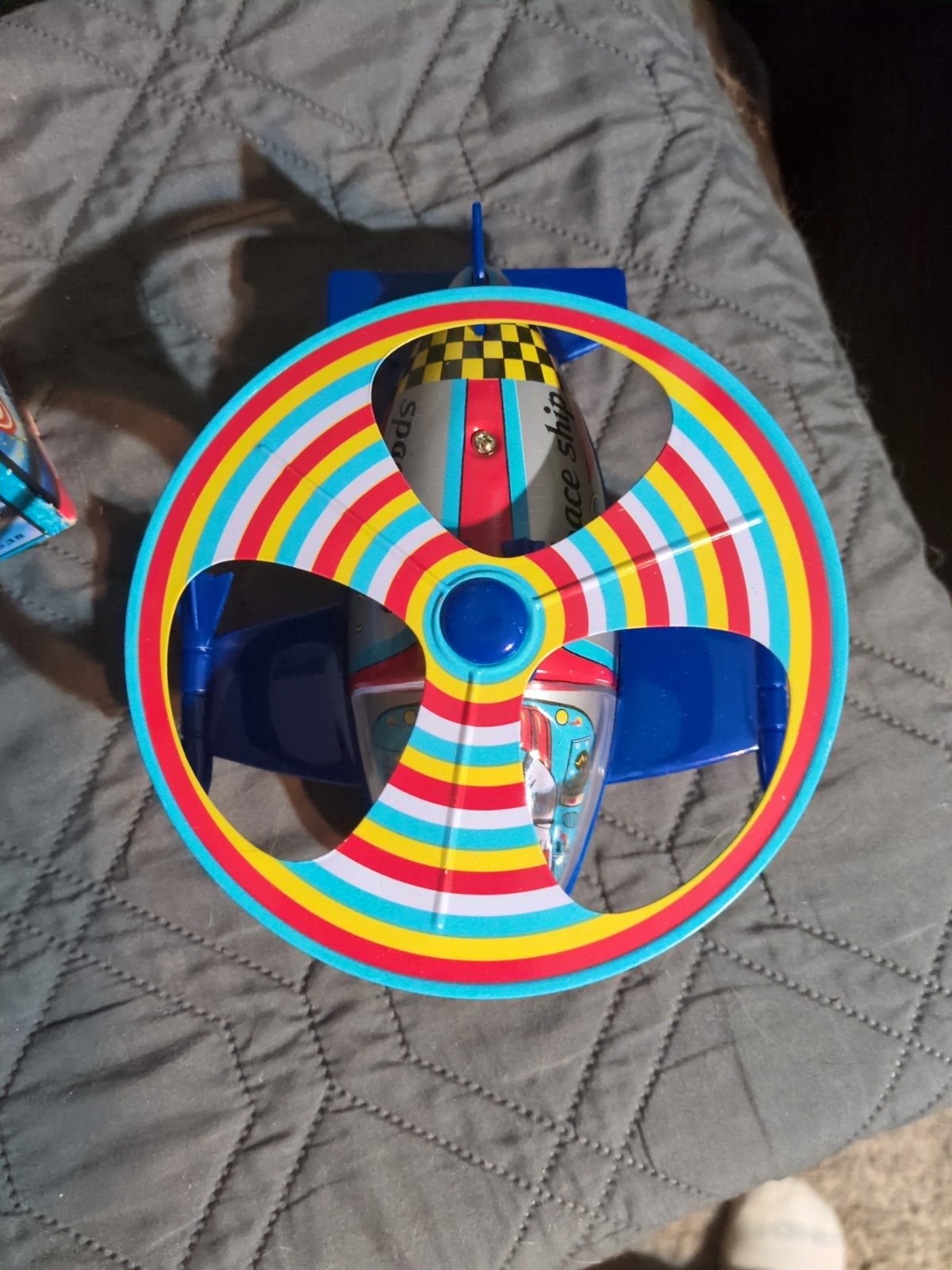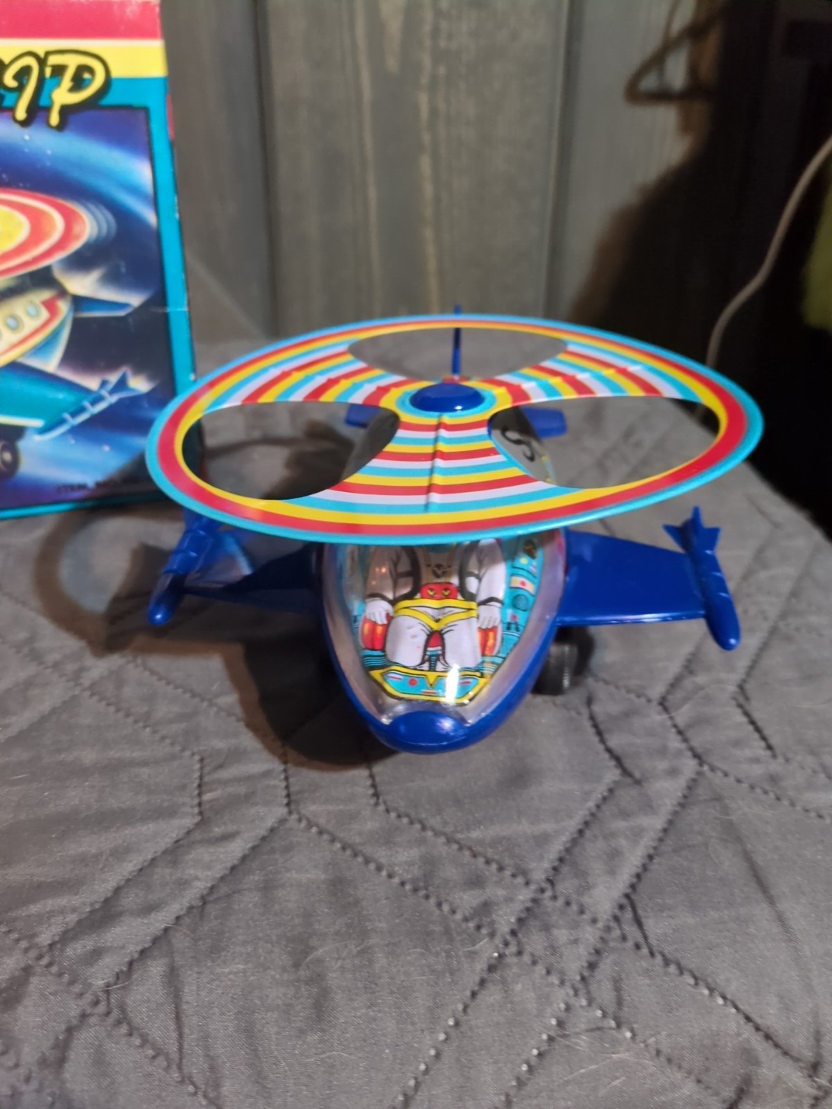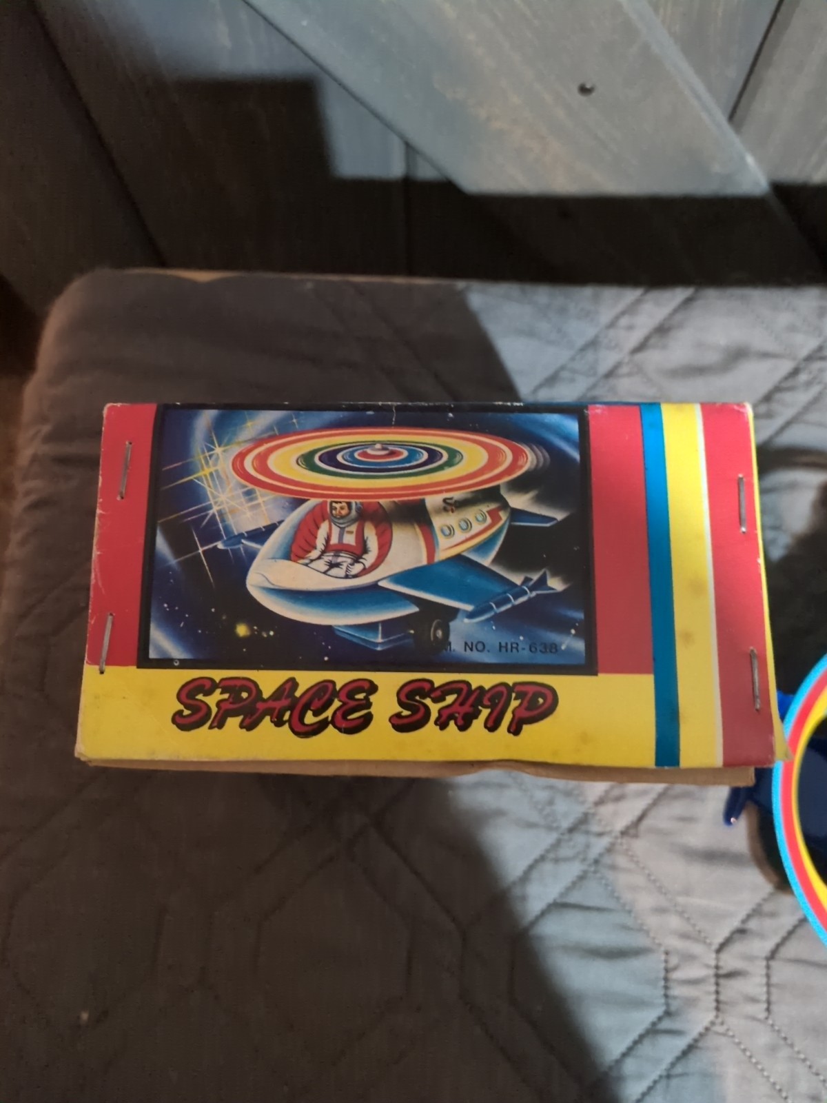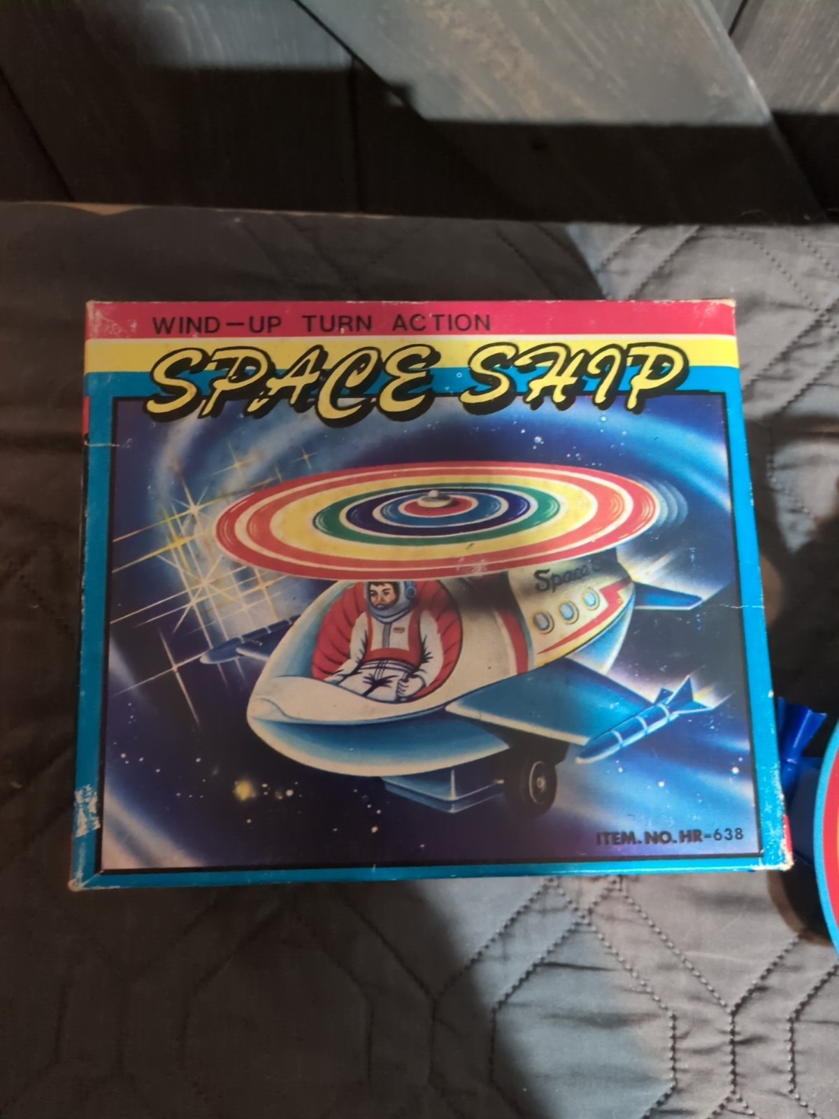 Vintage 80s Litho Tin Space Ship Wind Up Toy MTU Korea NM W/Original Box Clean