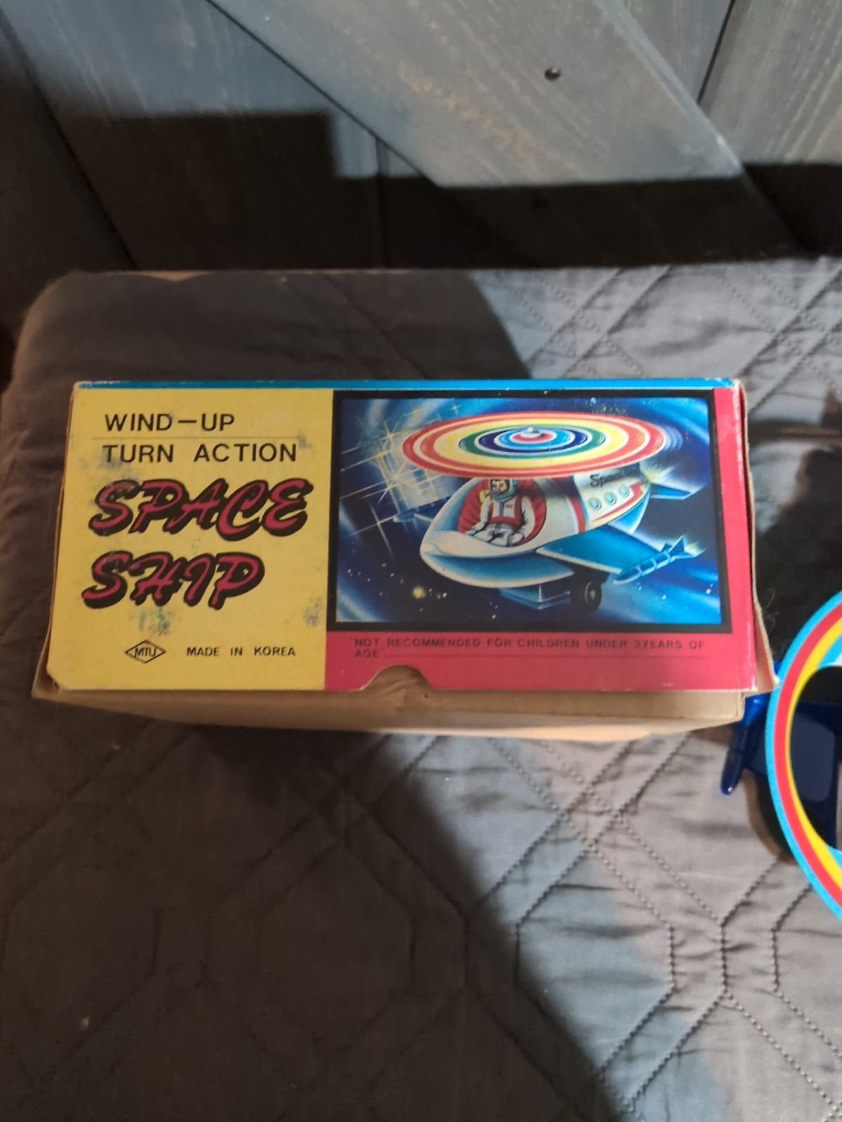 как выглядит Vintage 80s Litho Tin Space Ship Wind Up Toy MTU Korea NM W/Original Box Clean фото