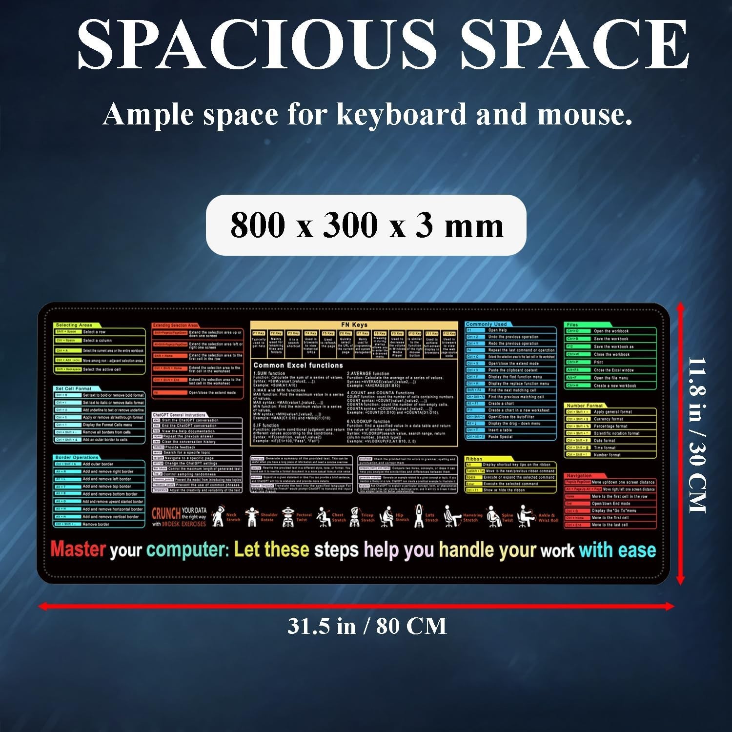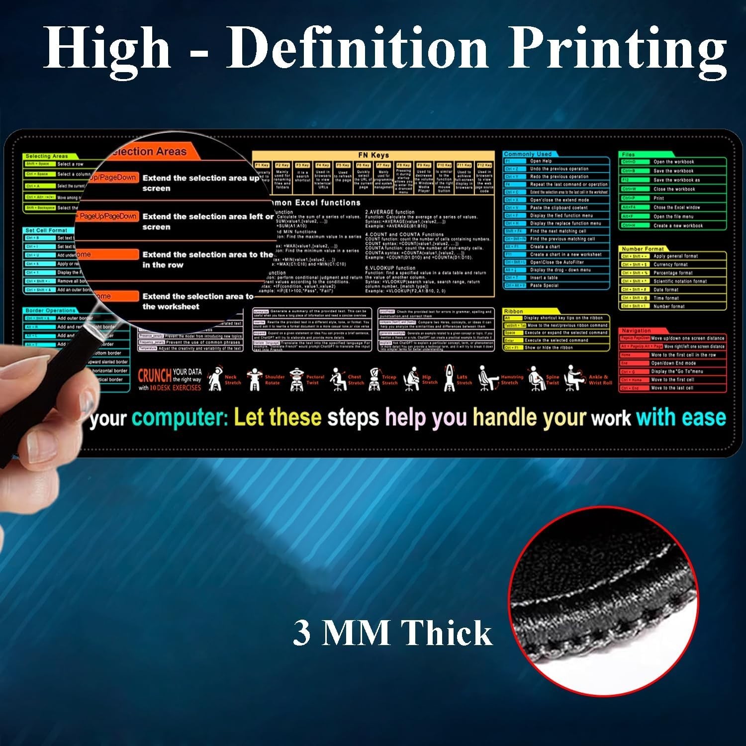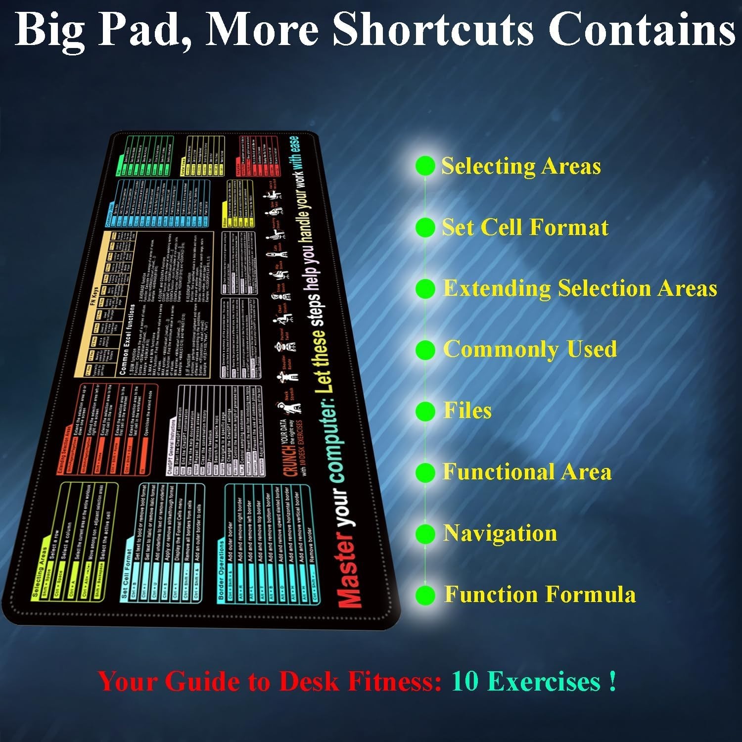XL Excel Cheat Sheet Desk Pad Waterproof Mouse Pad w/ Shortcuts Functions Pro