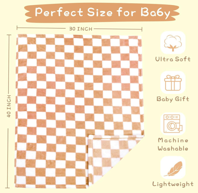 Yurhap Checkered Baby Blanket Fleece Baby Blankets for Boys, Ultra Soft Cozy Flu
