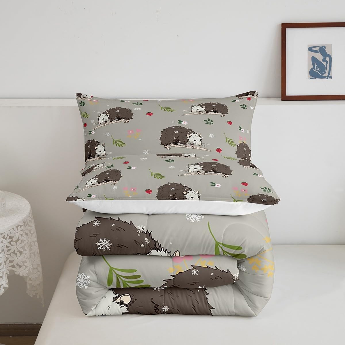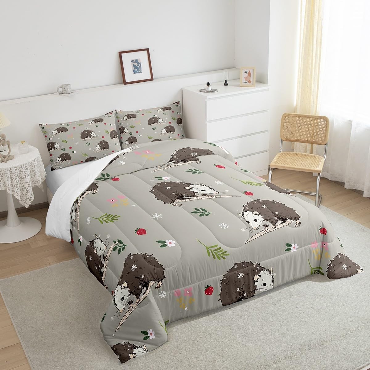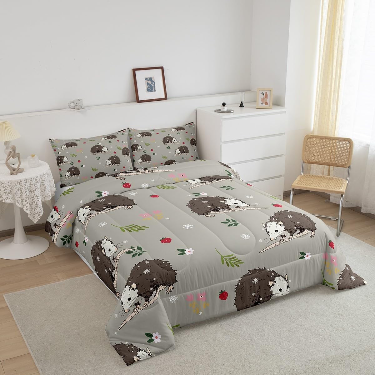 как выглядит Opossum Comforter Set for Kids Boys Girls Cute Possum Bedding Set Queen Size ... фото