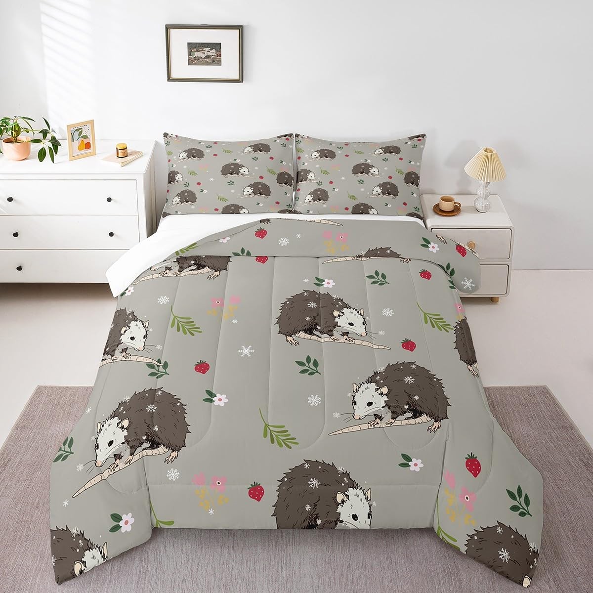 Opossum Comforter Set for Kids Boys Girls Cute Possum Bedding Set Queen Size ...