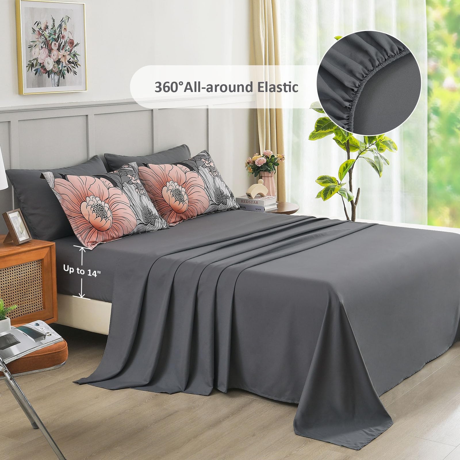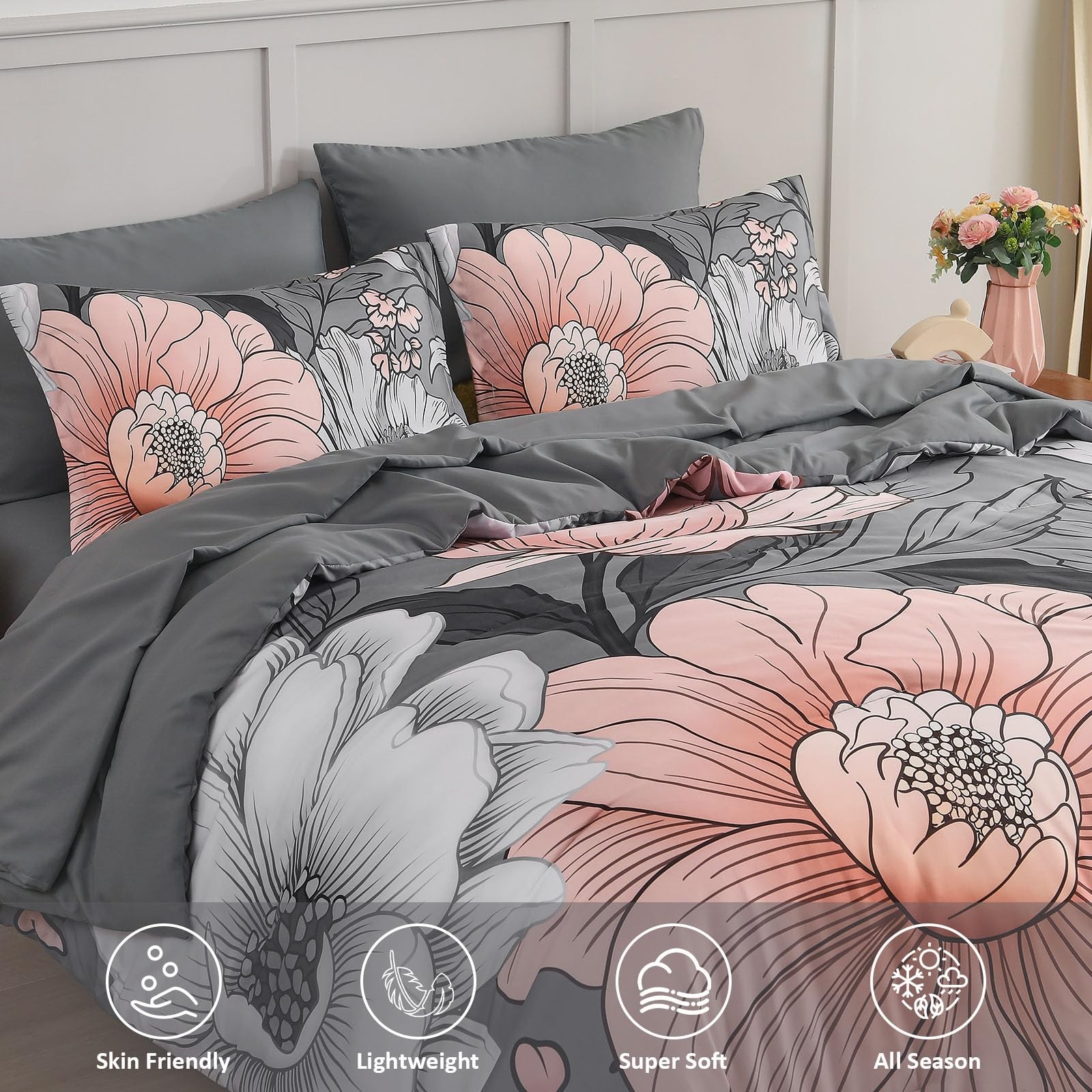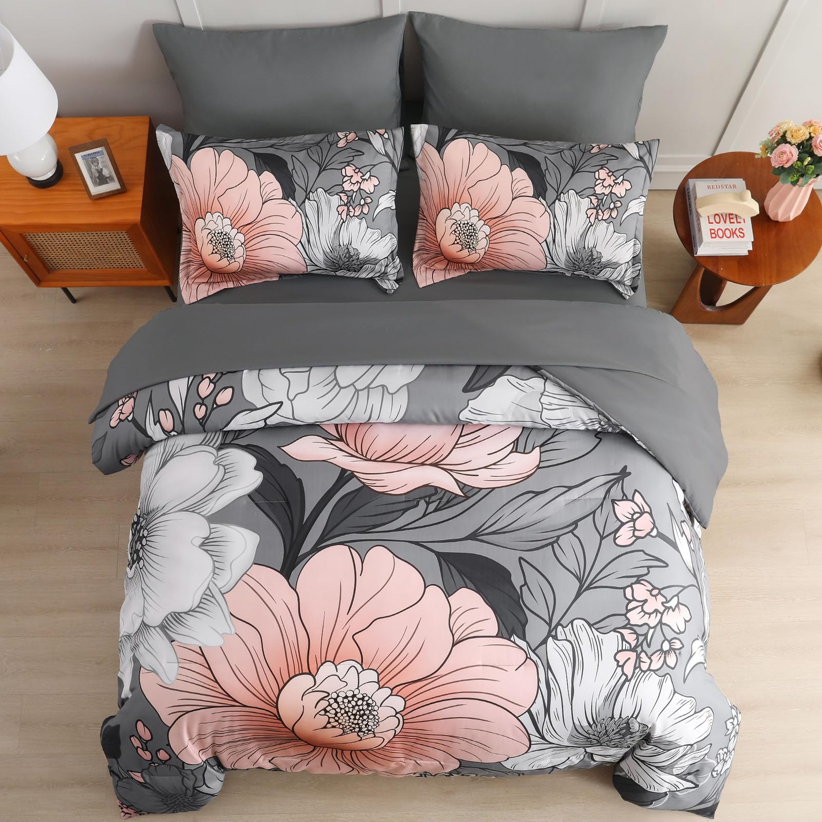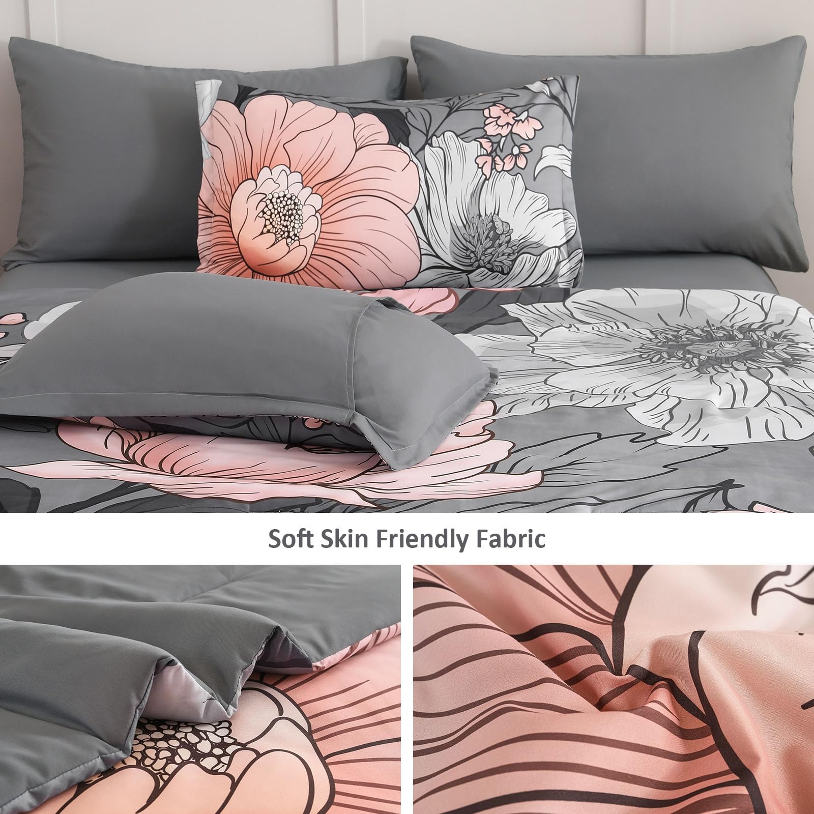 King Comforter Set 7 Pieces Grey Floral Comforter Set King Size Bed in a Bag ...