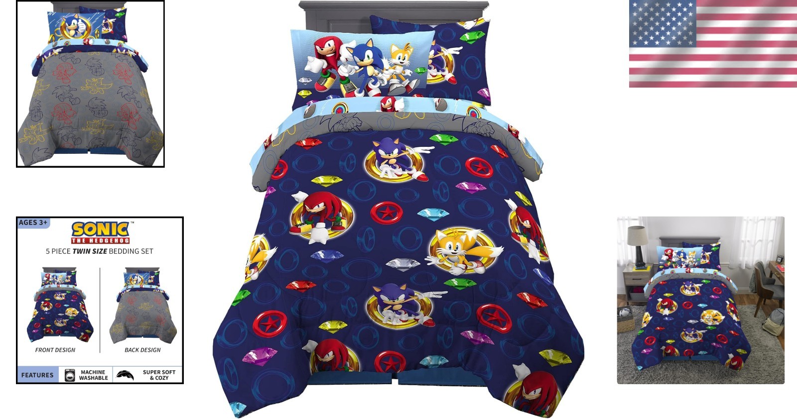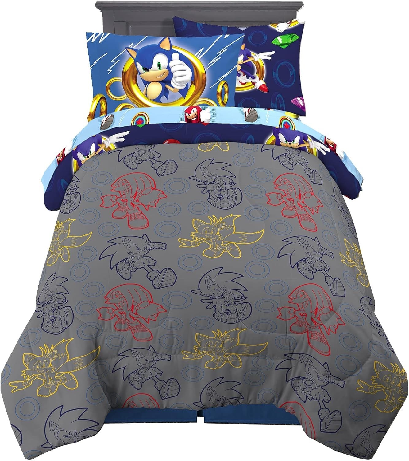 как выглядит Vibrant Sonic The Hedgehog Bedding Set - Twin 5 Piece Comforter Sheets фото