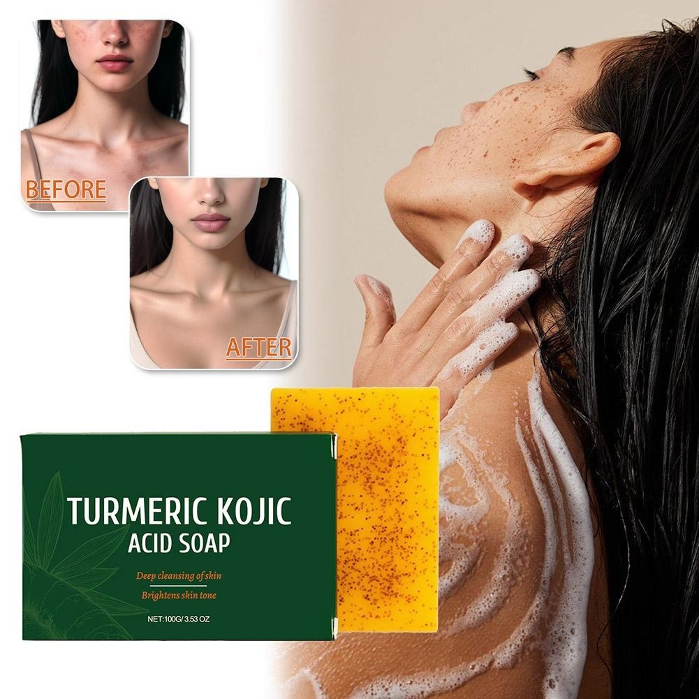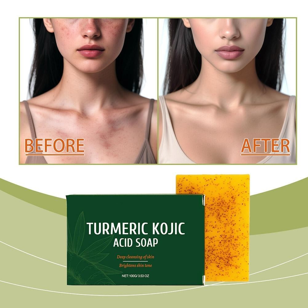 Turmeric Kojic Acid Soap Dark Spot Whitening Soap Skin Lightening C8Y1