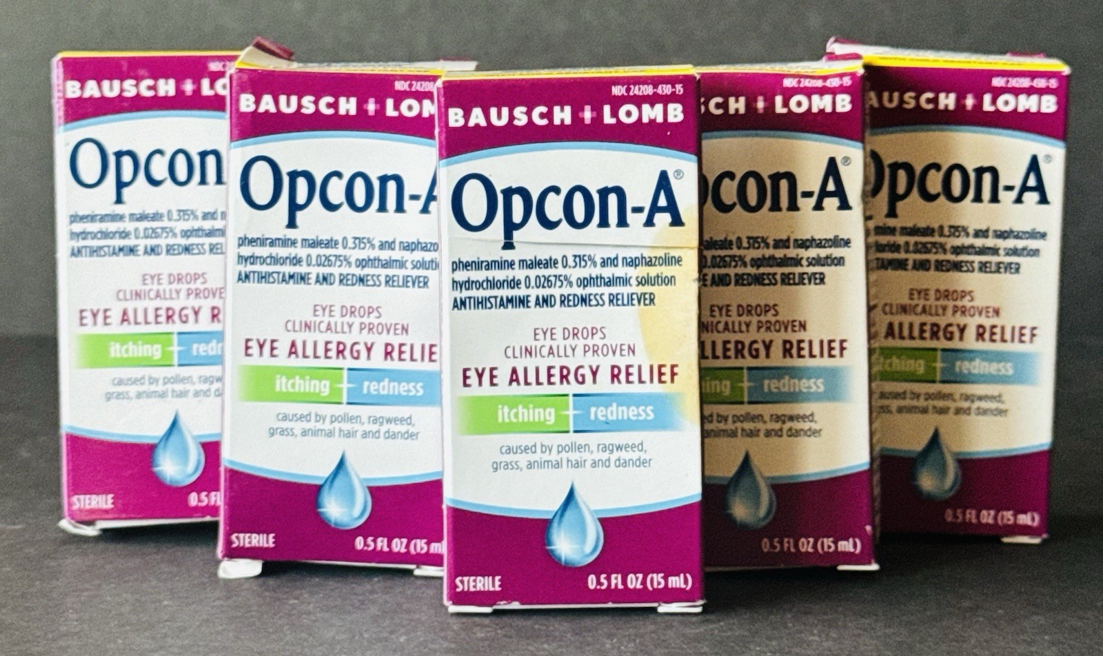 как выглядит 5x Bausch Lomb Opcon-A Eye Drops Allergy Relief, 0.5 fl oz/15mL, BB: 01/2027 фото