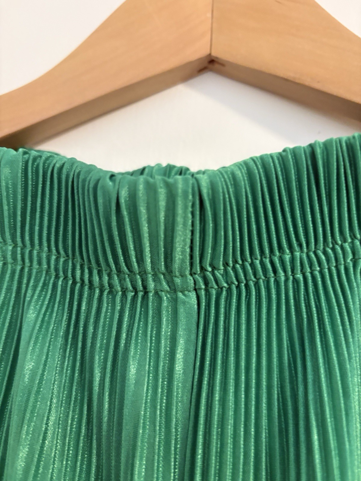 Emerald Green Pliss 2-Piece Loungewear Set. Button Up Shirt Wide-Leg Pants Sz S