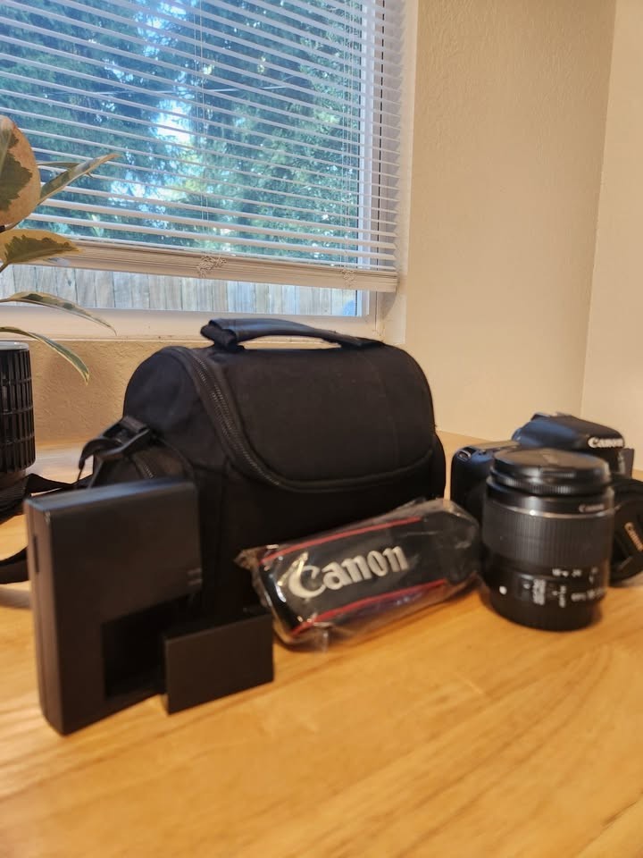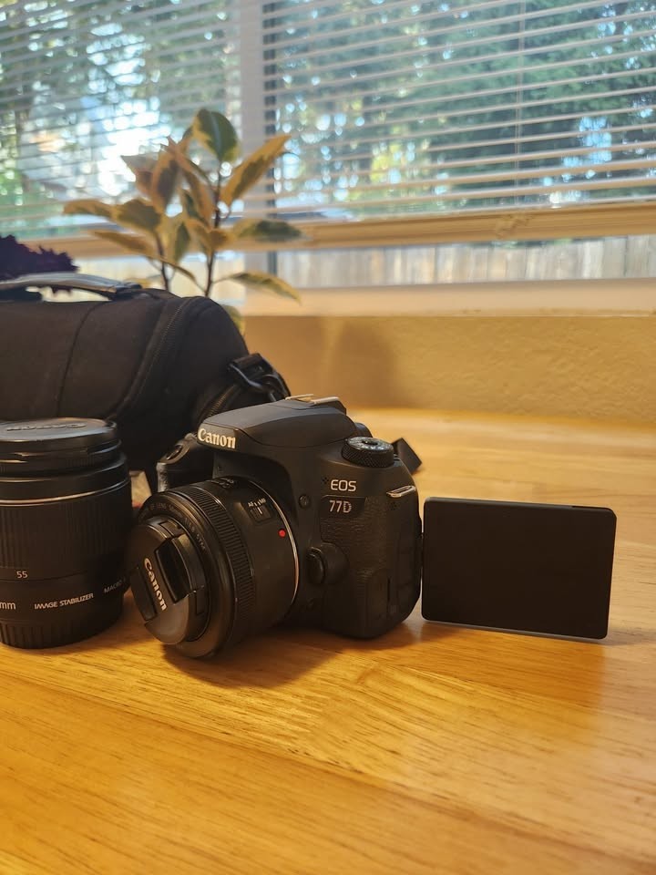 Canon 77d camera with 50mm f/1.8 and 18-55mm lenses