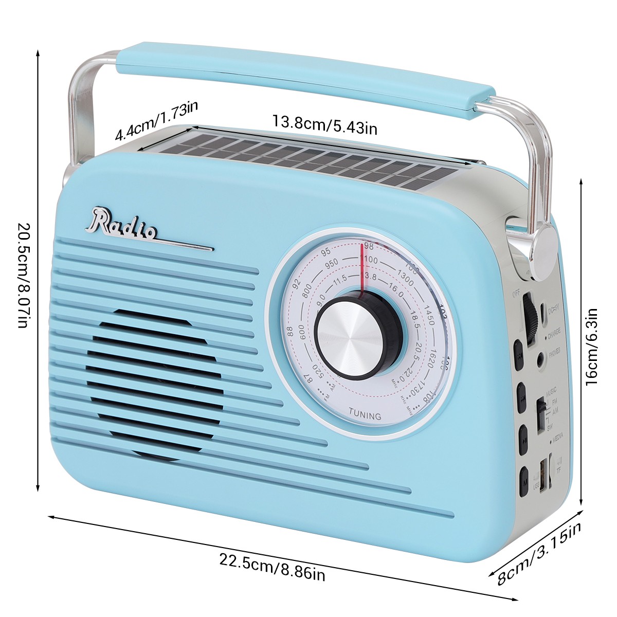 как выглядит Solar Portable Retro Radio FM AM SW Bluetooth Speaker MP3 Player Rechargeable фото