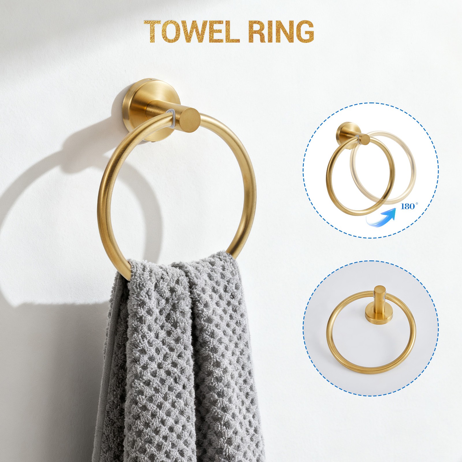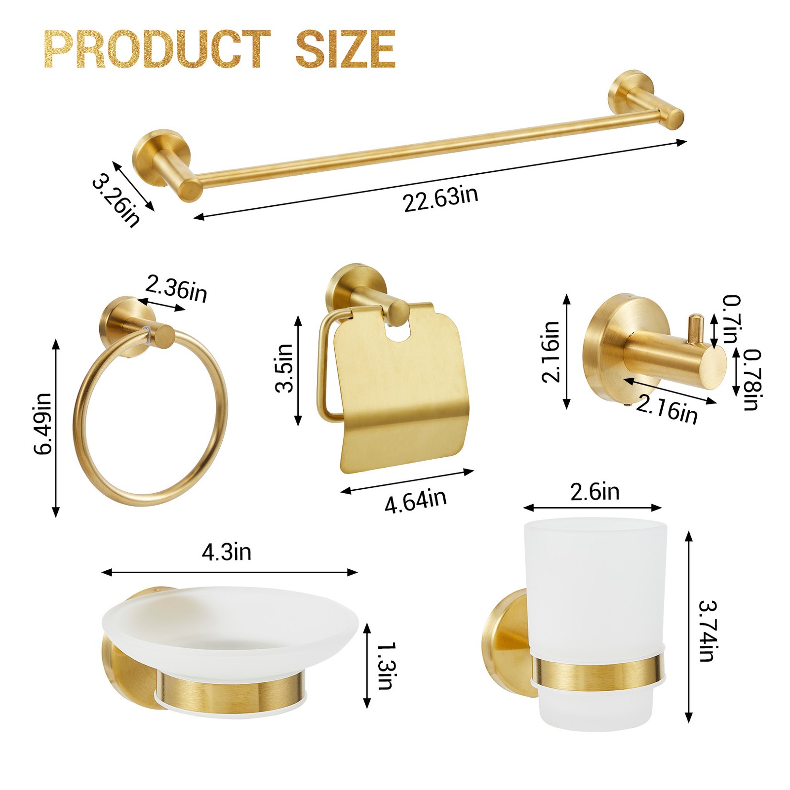 Gold Bathroom Accessories Set, 6-Piece Stainless Steel Bathroom Hardware Set