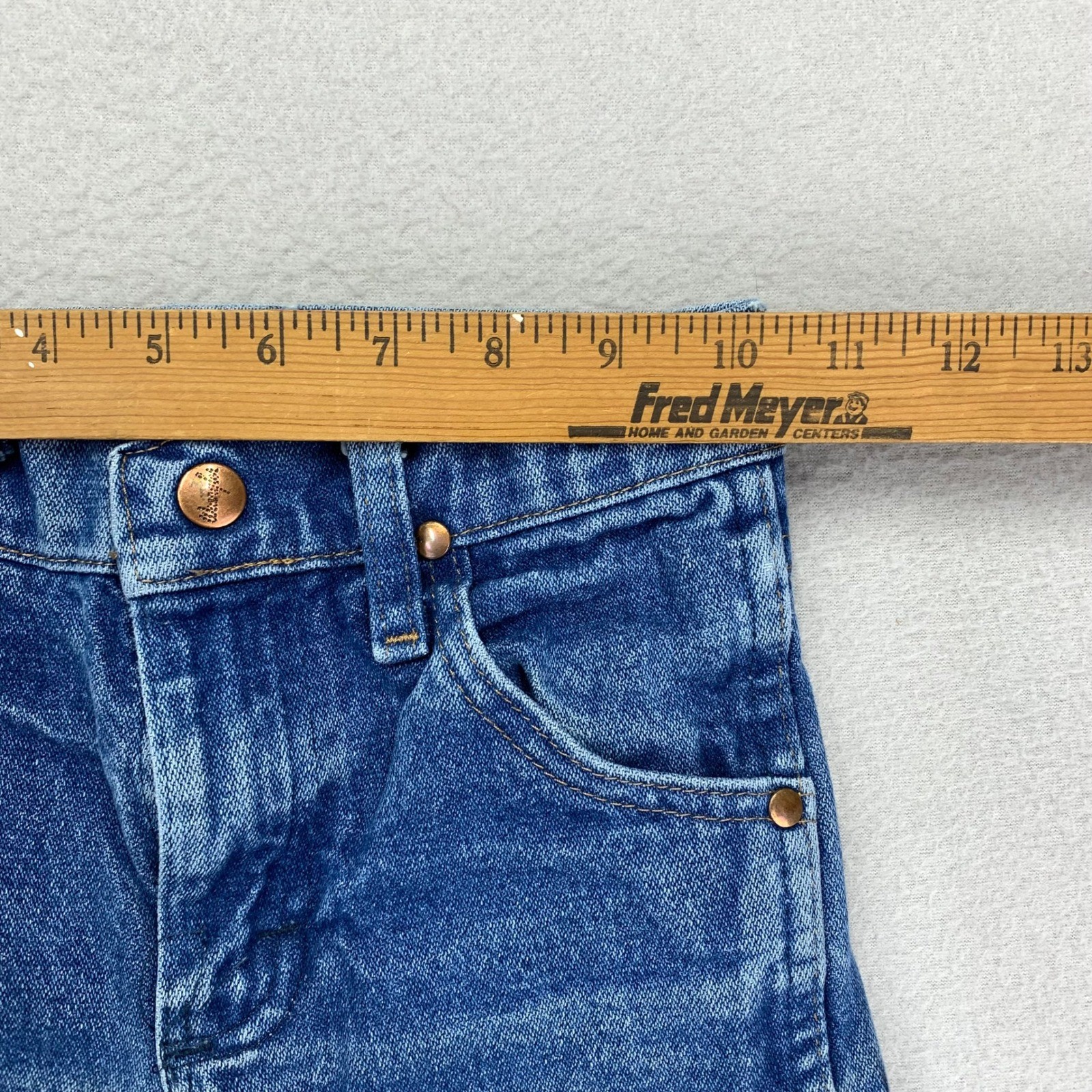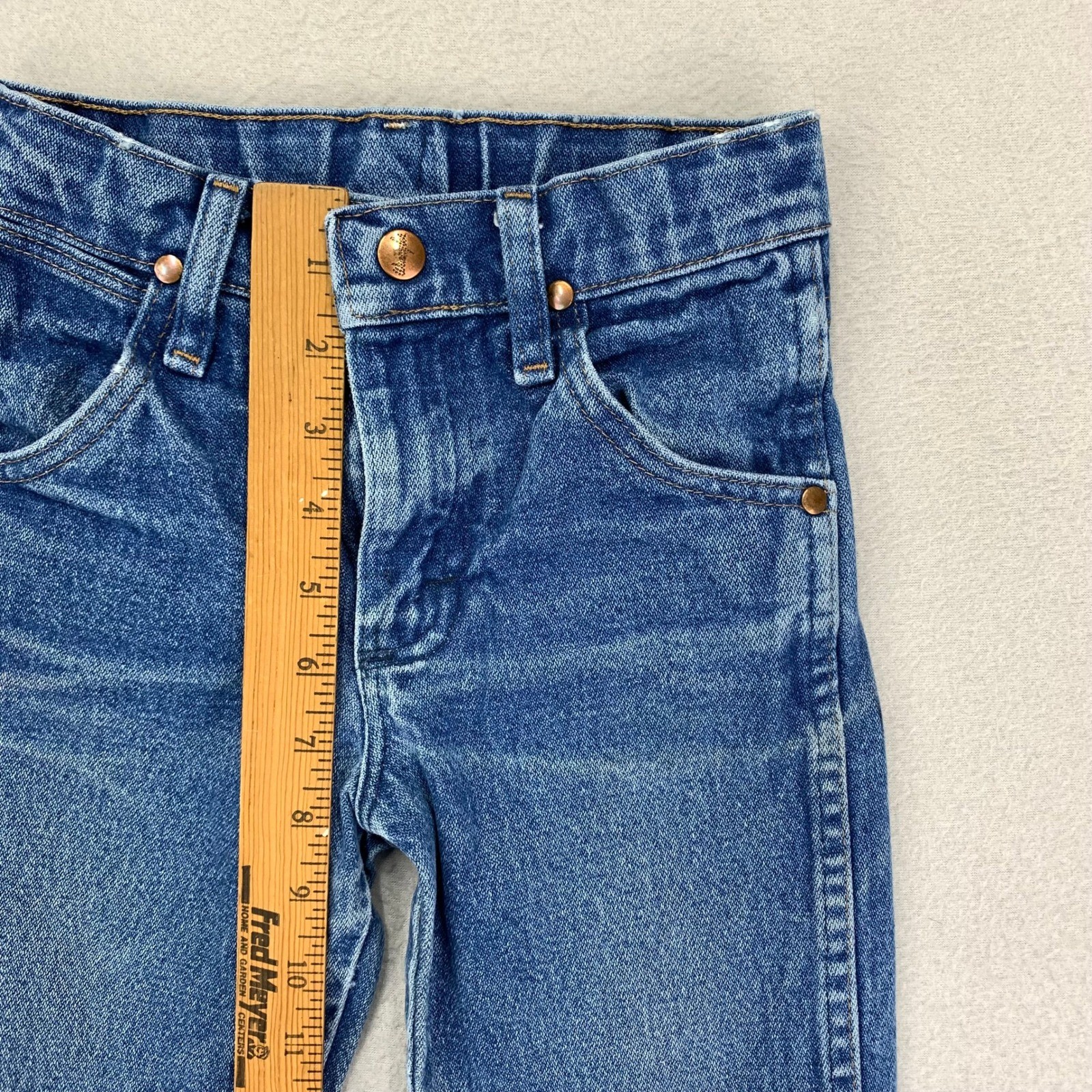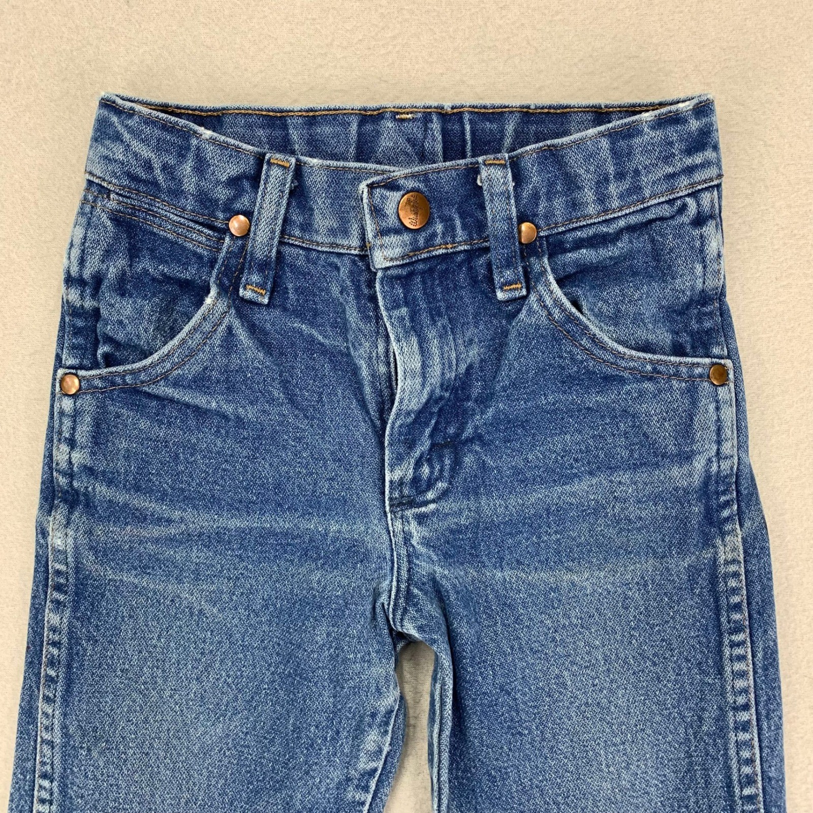 как выглядит VTG Wrangler Jeans Kids 7 Slim Distressed Cowboy Cut 13MWZ Bootcut Whiskering фото