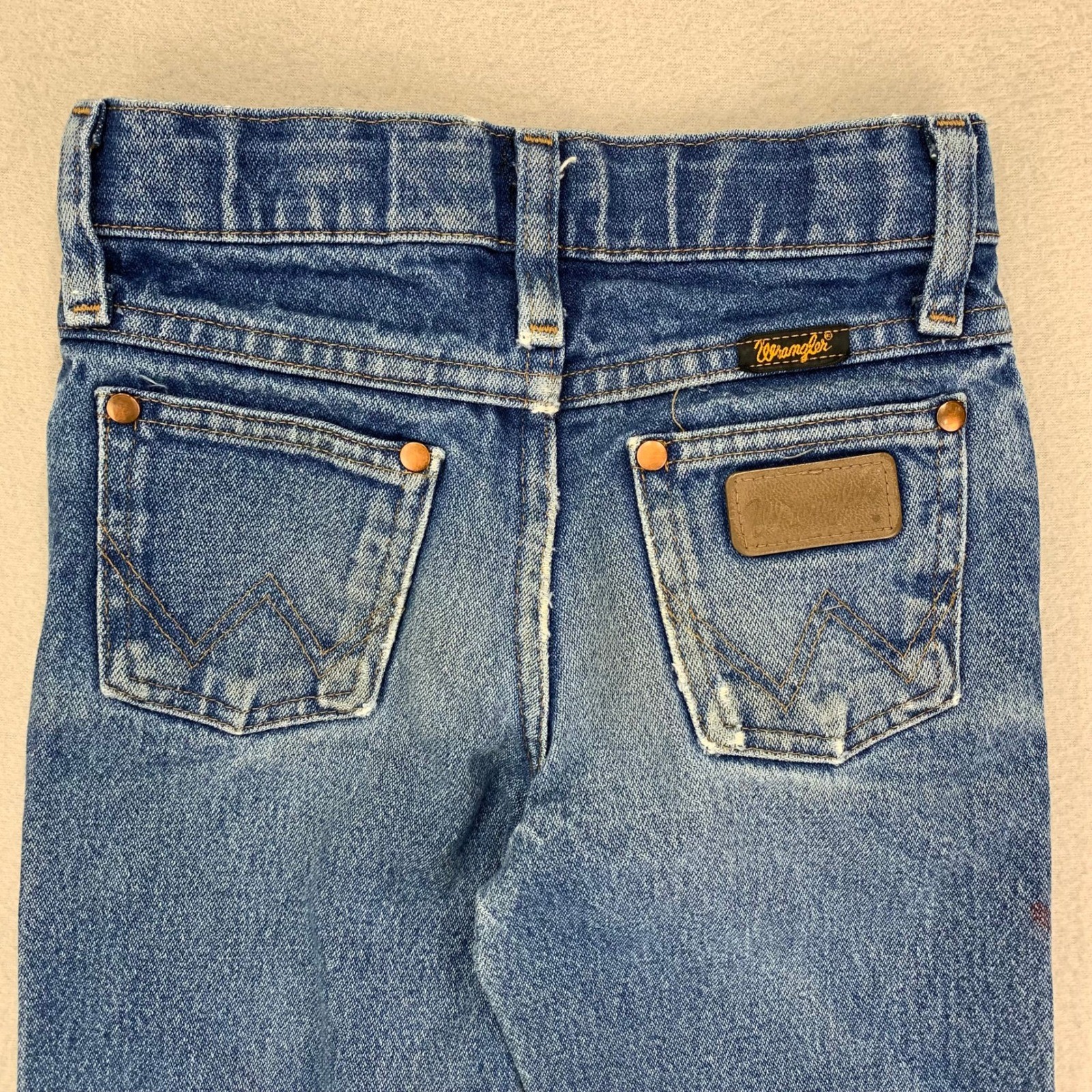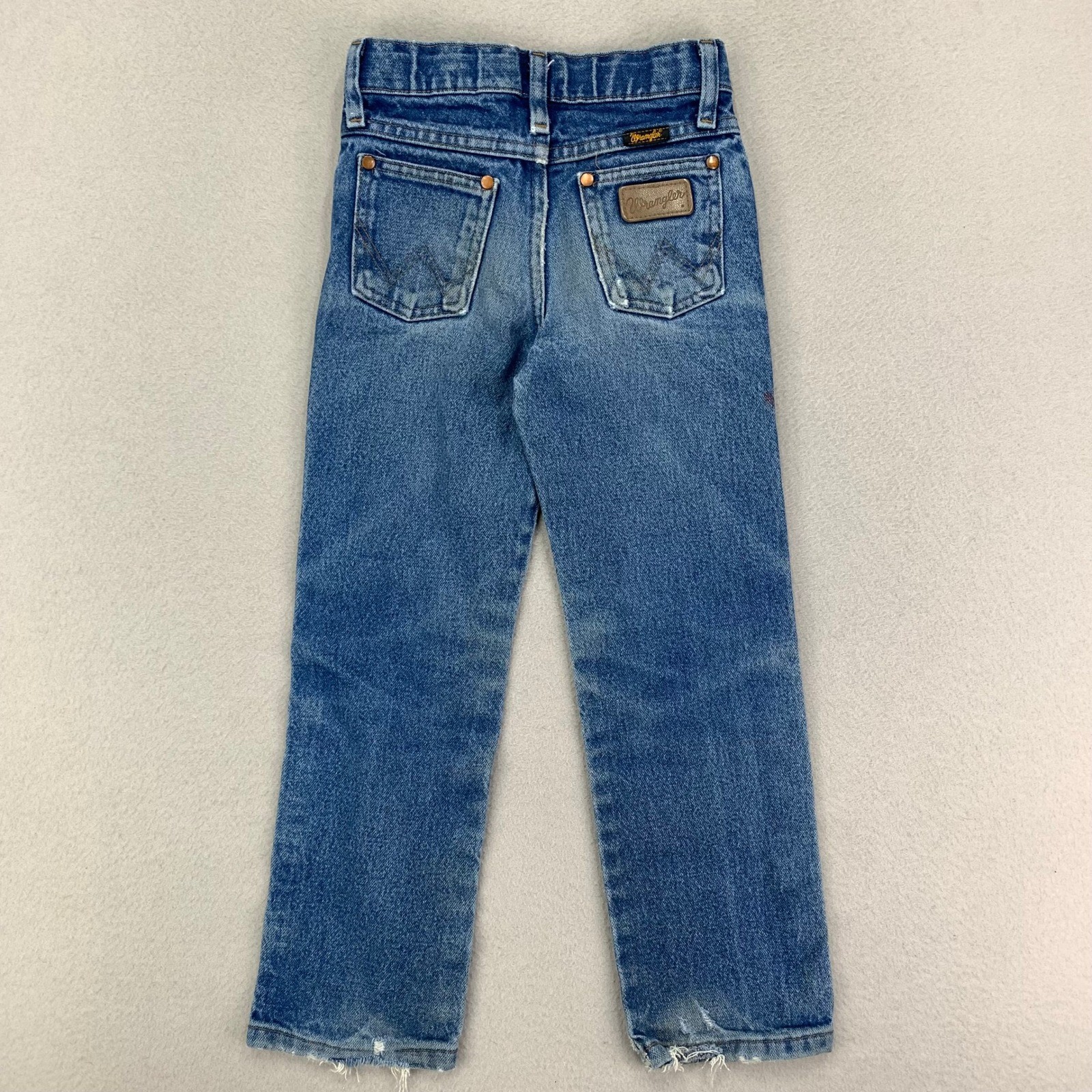 VTG Wrangler Jeans Kids 7 Slim Distressed Cowboy Cut 13MWZ Bootcut Whiskering