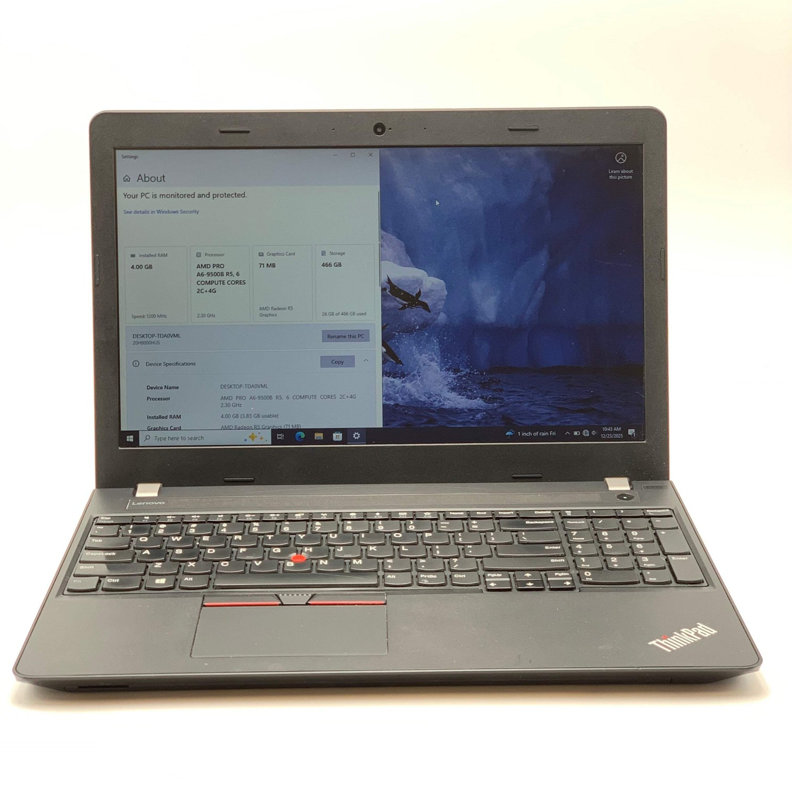 Lenovo ThinkPad E575 15-inch AMD A6 9600B 4GB RAM 466GB Black Laptop