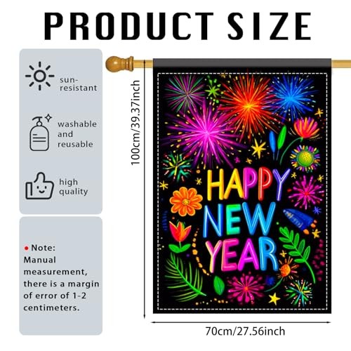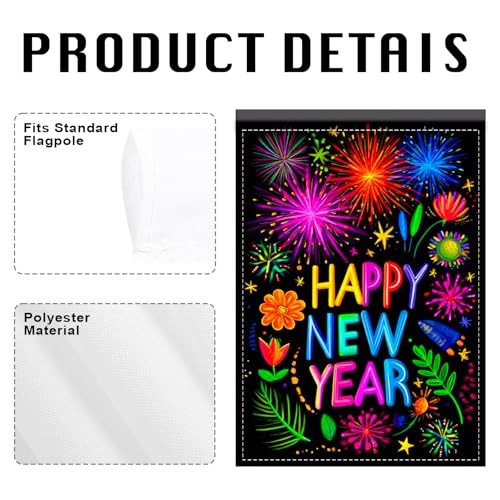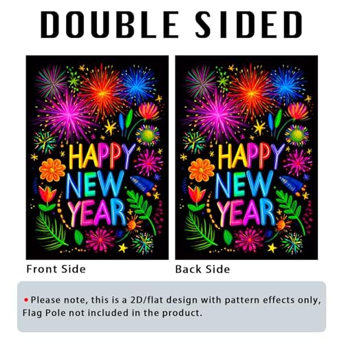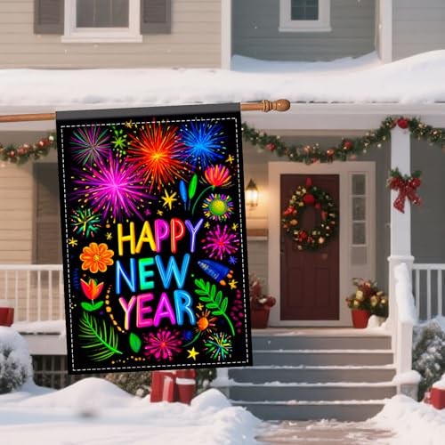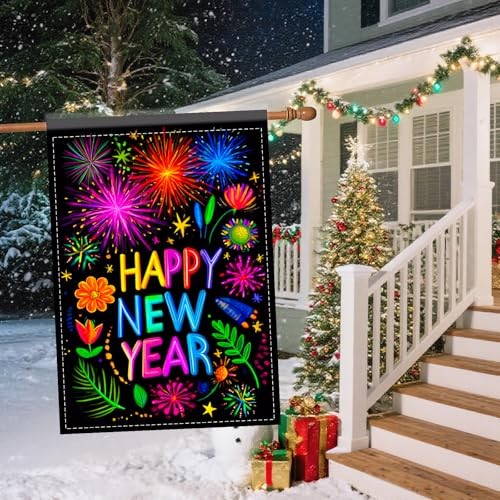 Happy New Year Garden Flag 2026 colorful red, blue, yellow, green, etc.