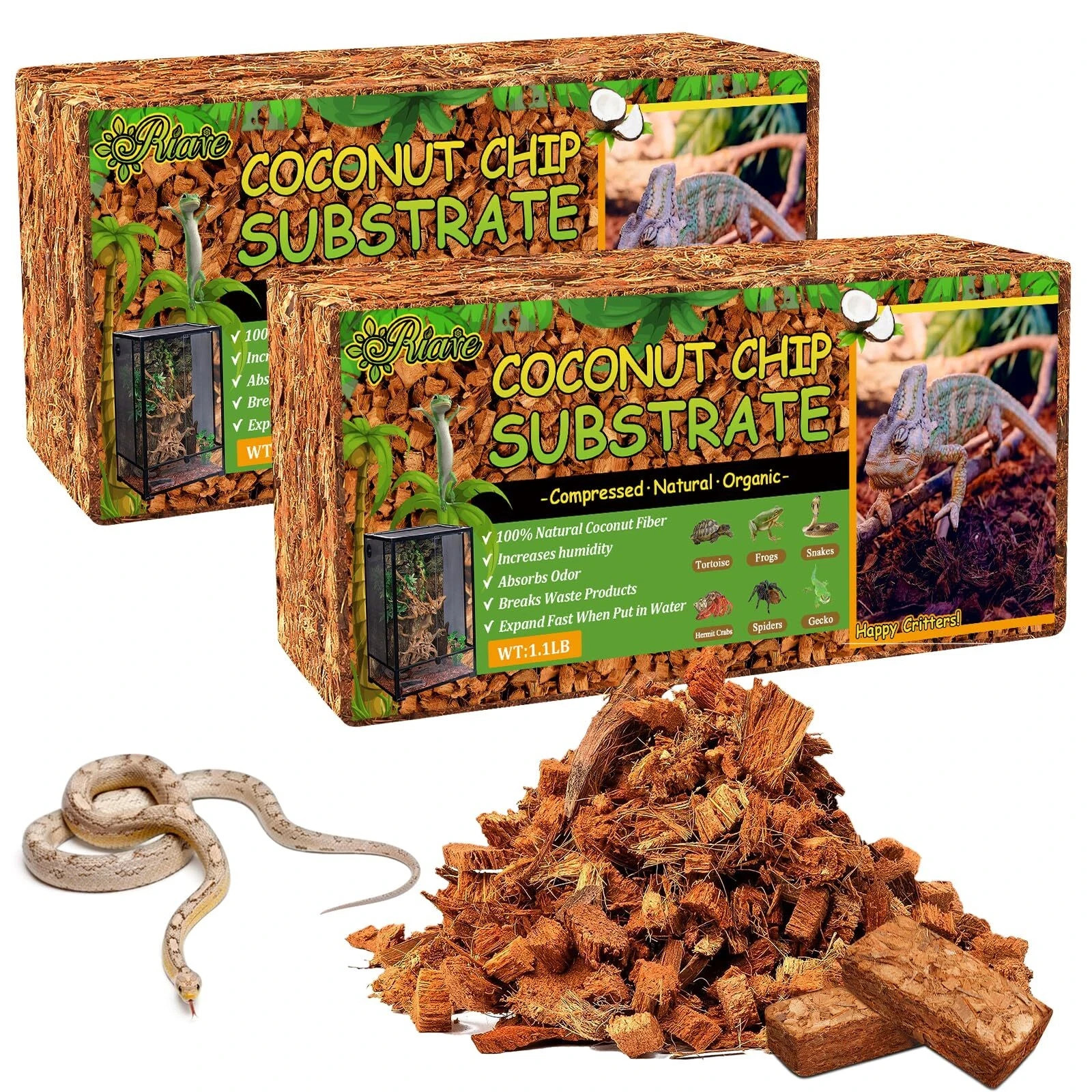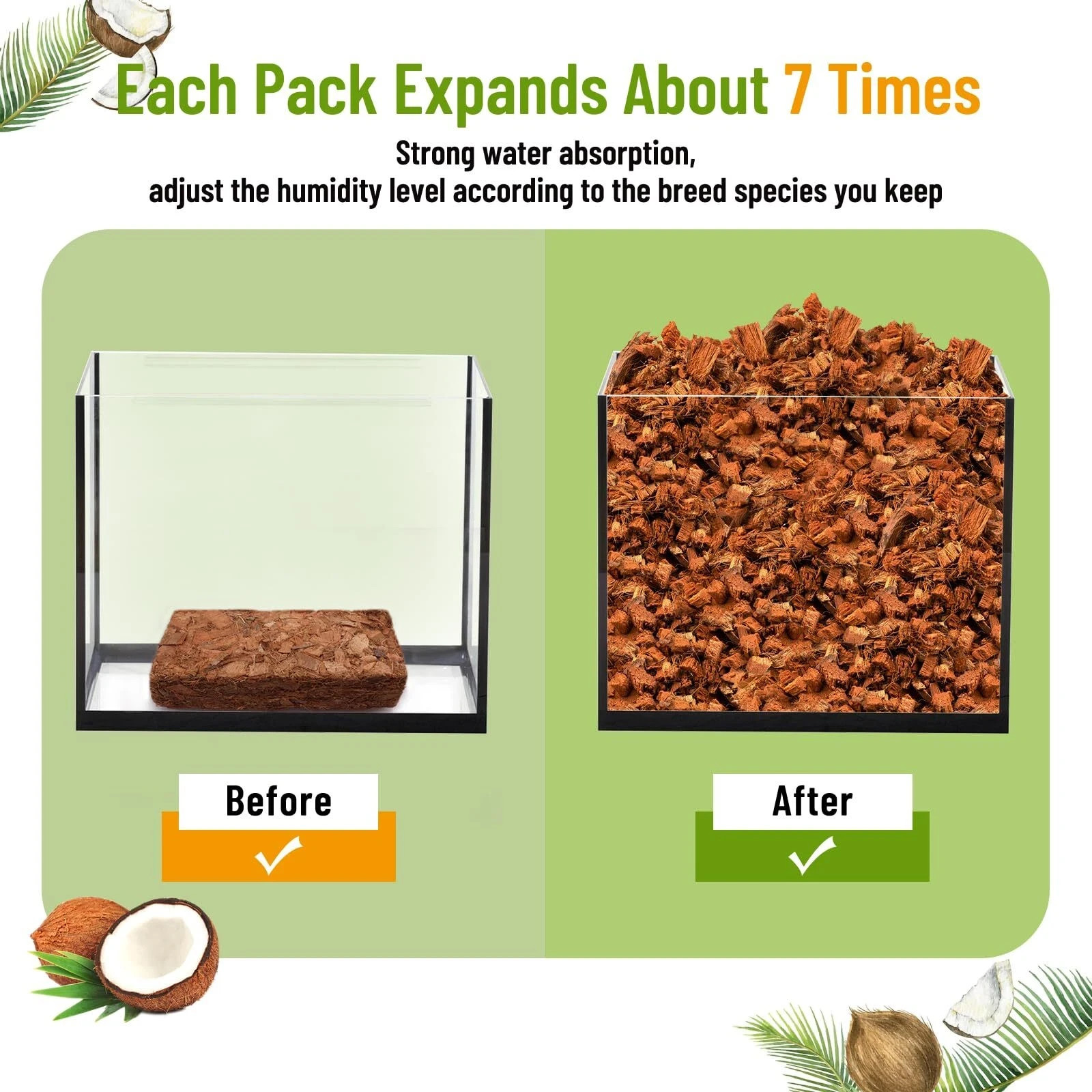2 Pack Natural Coconut Chip Substrate for Reptiles- Compressed Coconut Husk R...