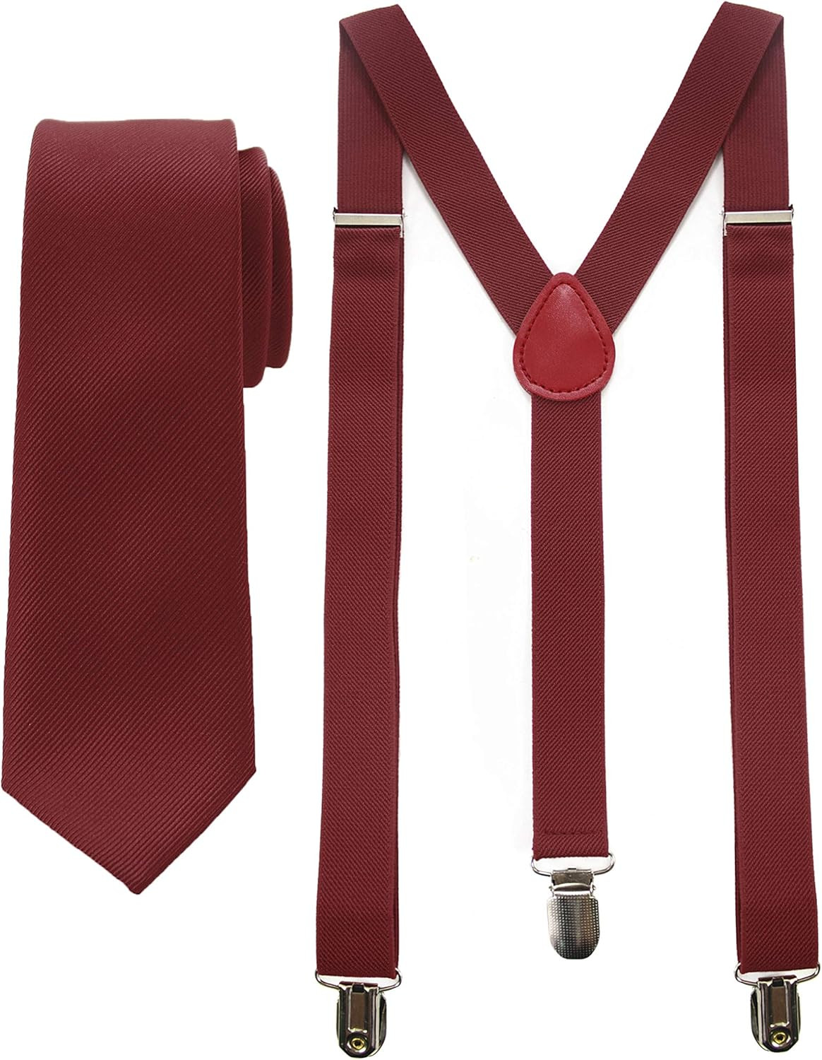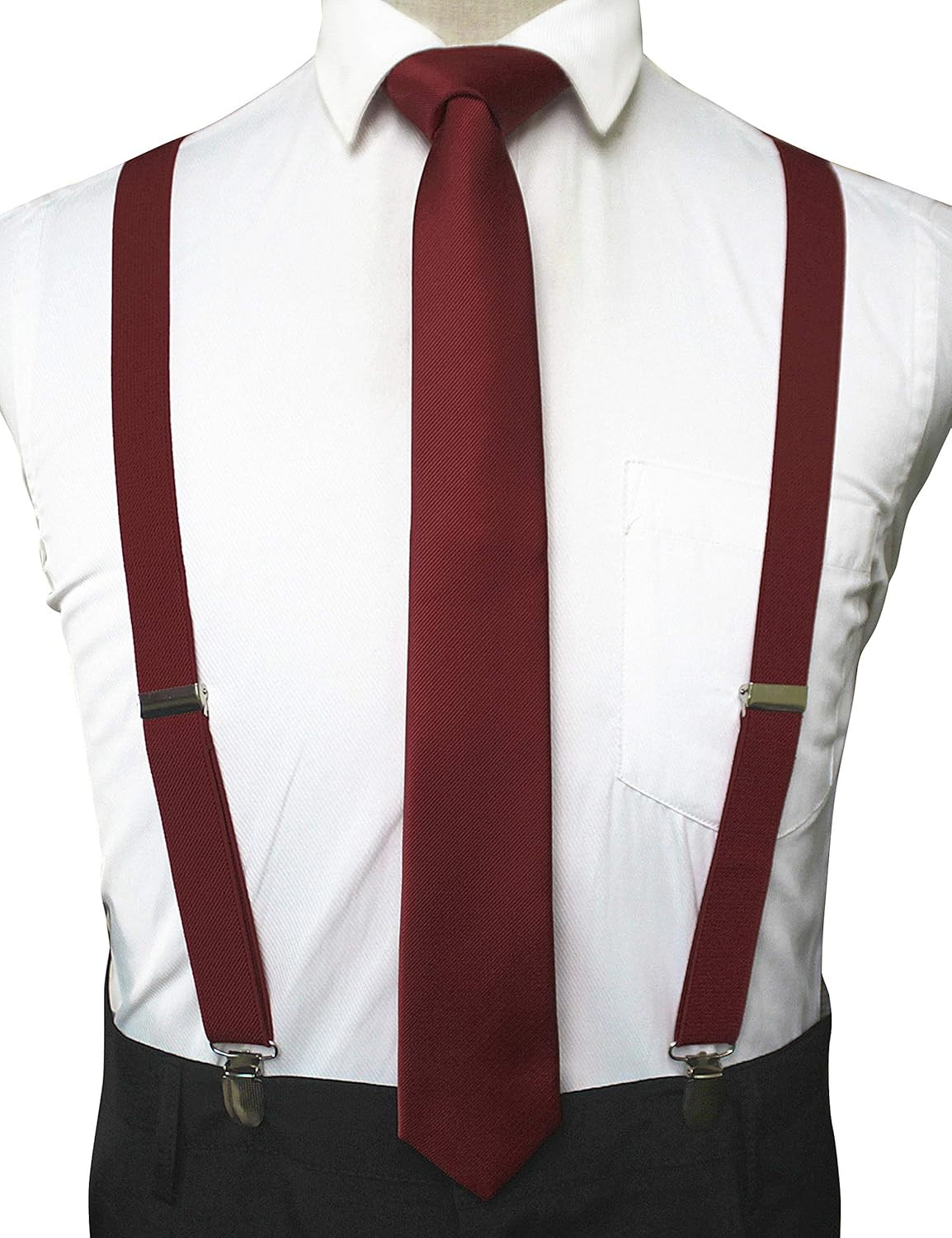 Men s Solid Color Suspenders Silk Skinny Tie Set Formal Wedding Party Gift