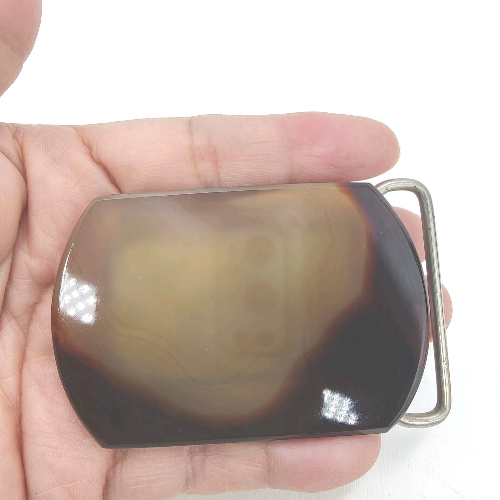Vintage Agate Stone Belt Buckle 3 Brown Boho Western Style Lapidary Quartz