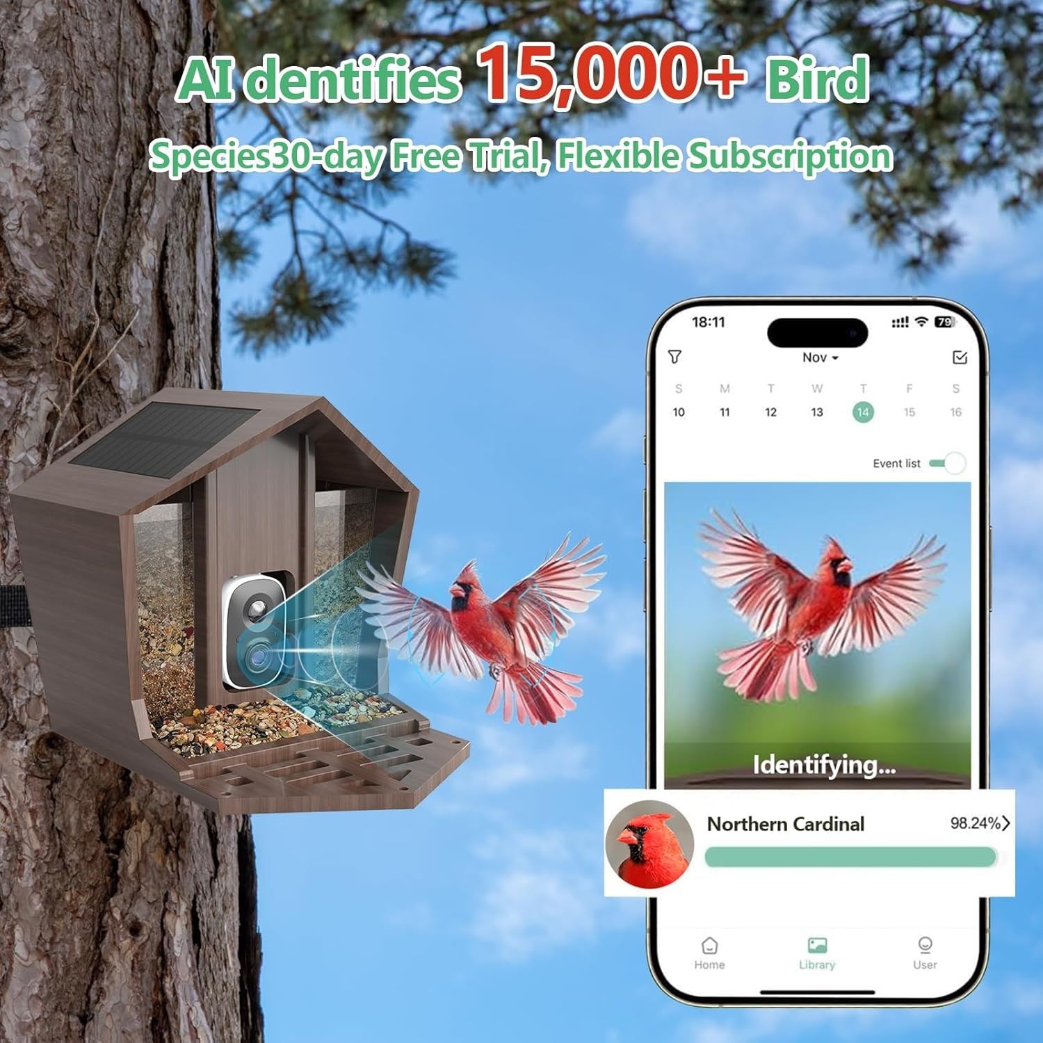 как выглядит Smart Bird Feeder With Camera Solar Powered Solar Roof - New фото