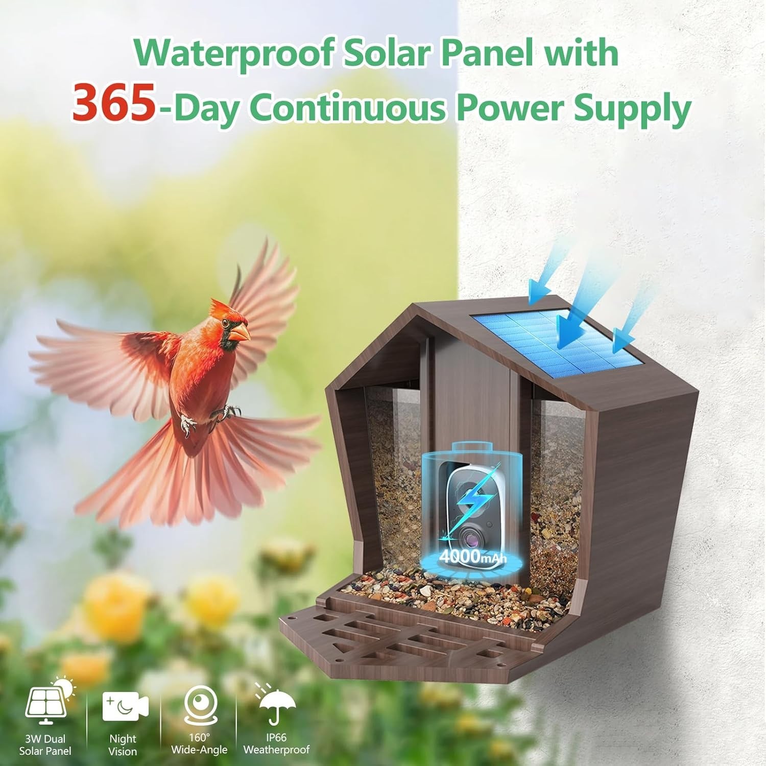 Smart Bird Feeder With Camera Solar Powered Solar Roof - New