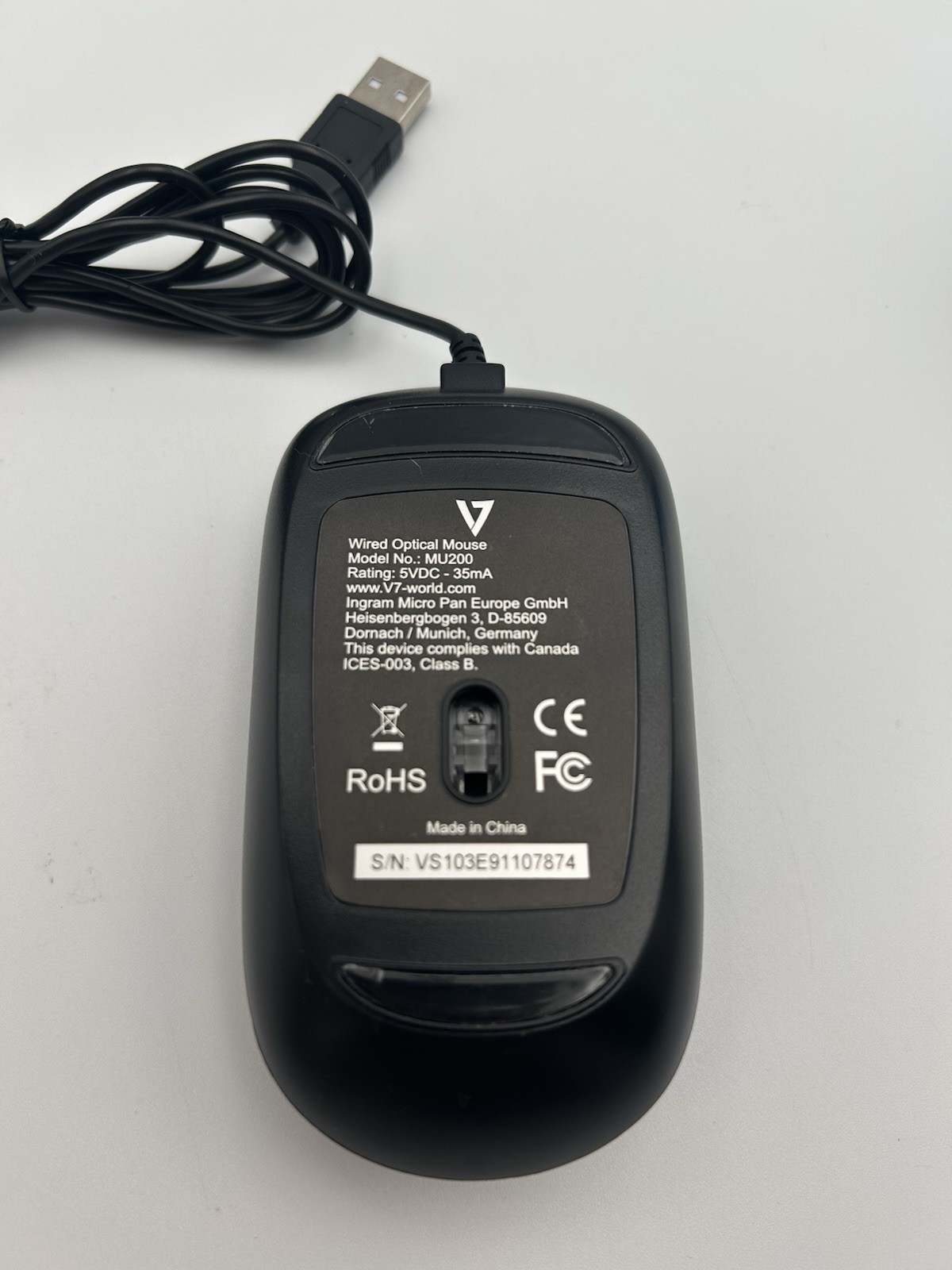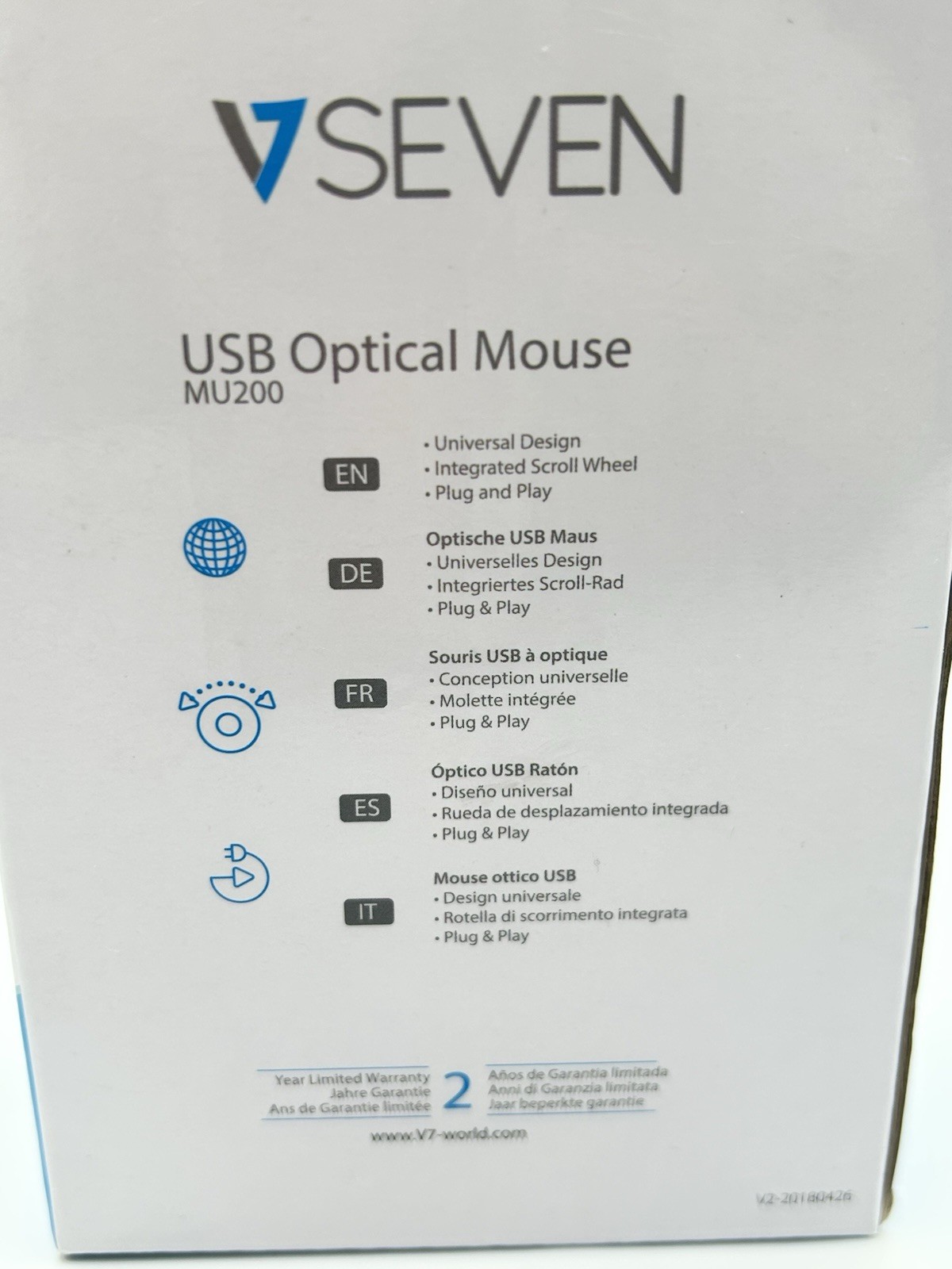 Seven USB Optical Mouse Wired MU200 Rating 5VDC-35mA Black Low Profile Open Box