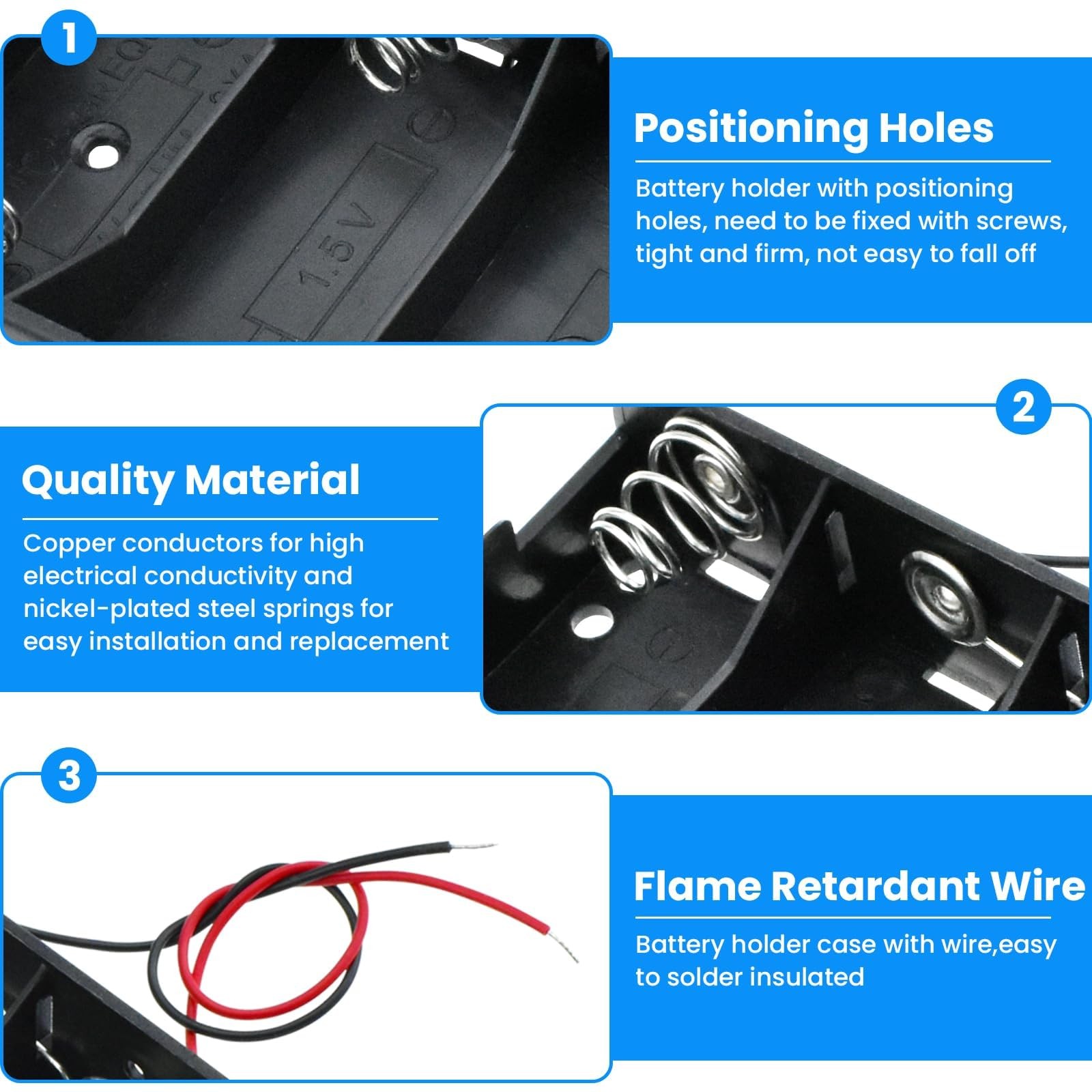 2-Pack 2X C Cell Battery Holder 3V C Size Battery Case Box with Wire Leads