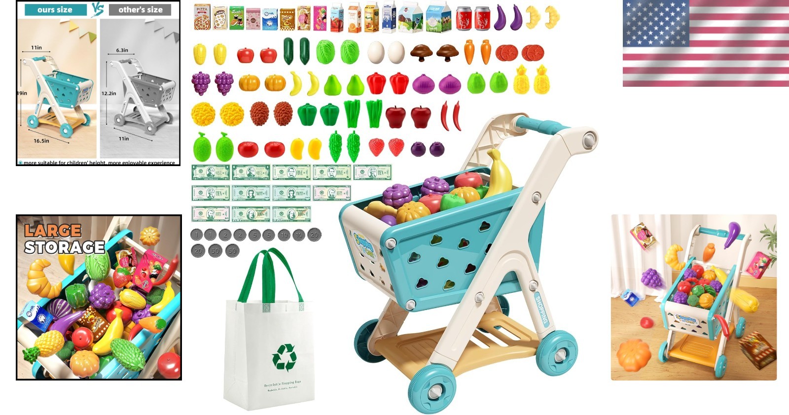 Included Components: Kids Shopping Cart Trolley Play Set