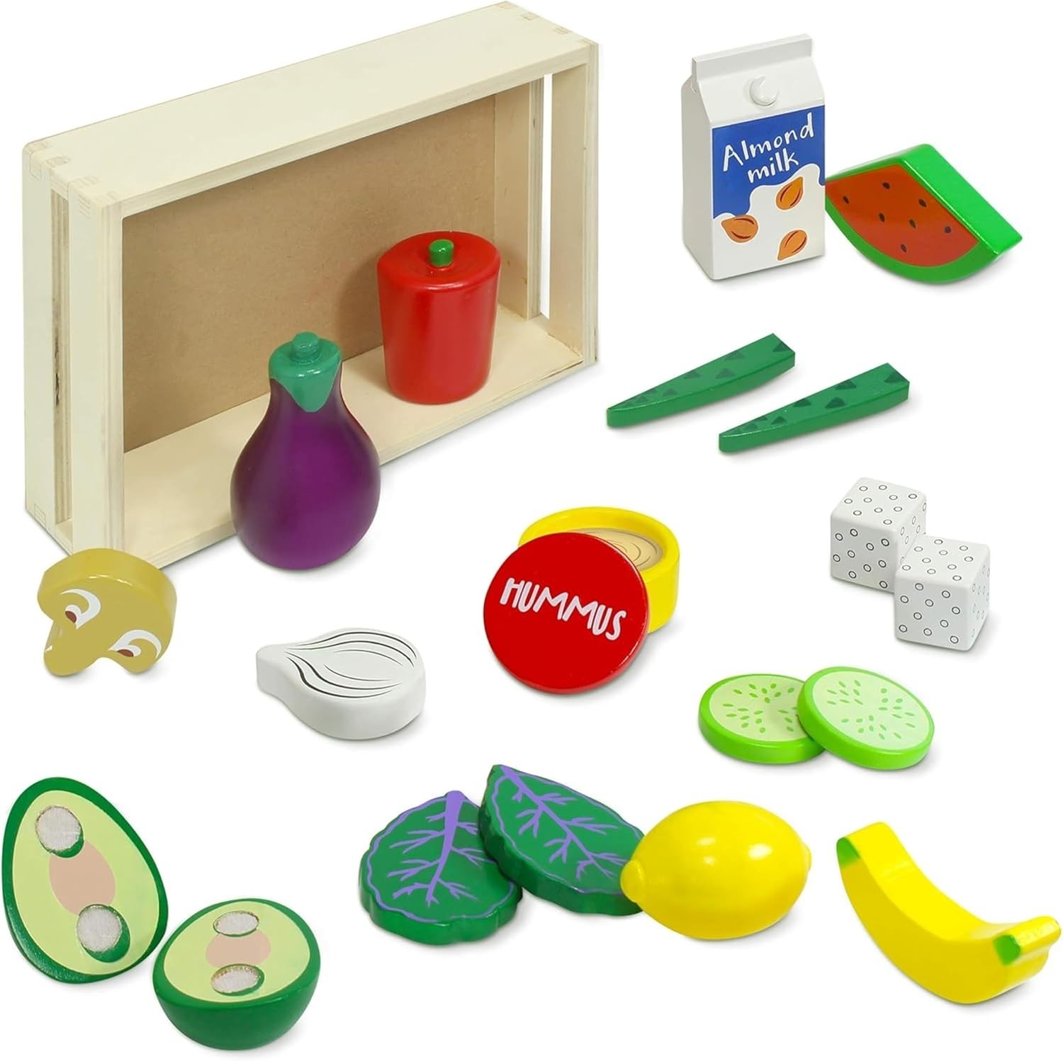 Healthy Kitchen Play Food Set - 20 Wooden Toys for Creative Toddlers