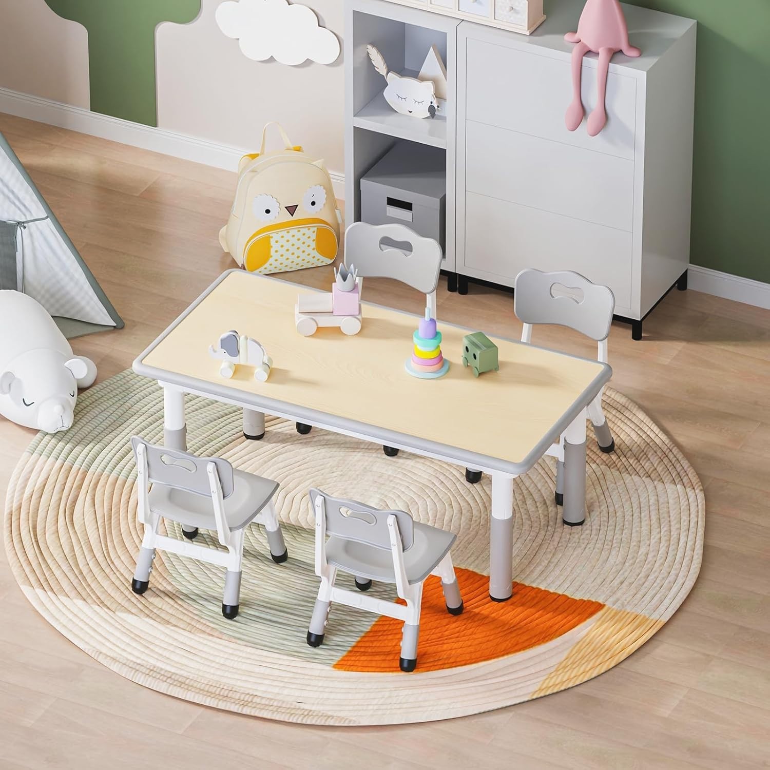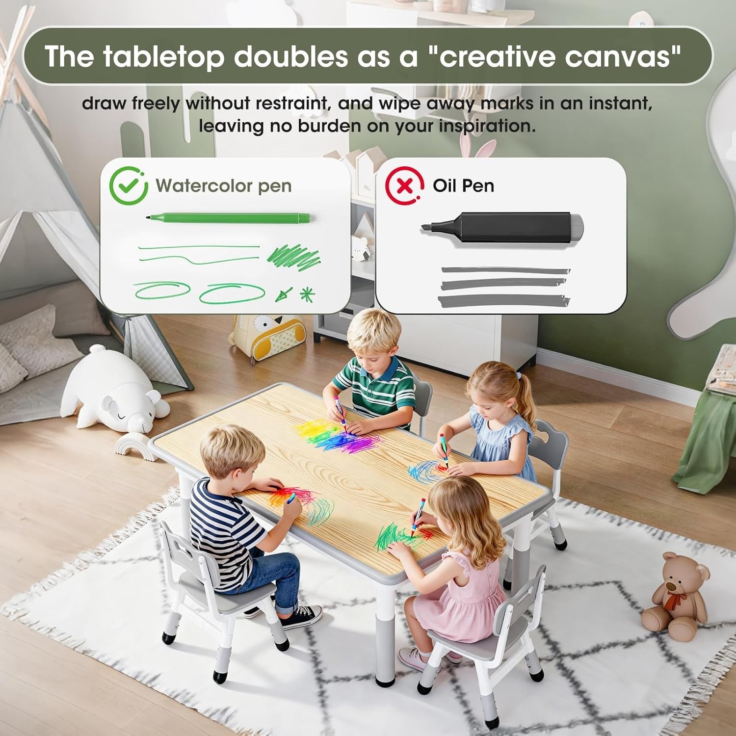 HLPB Kids Table and 4 Chairs Set, Adjustable Height, Graffiti Desktop, Non-Slip