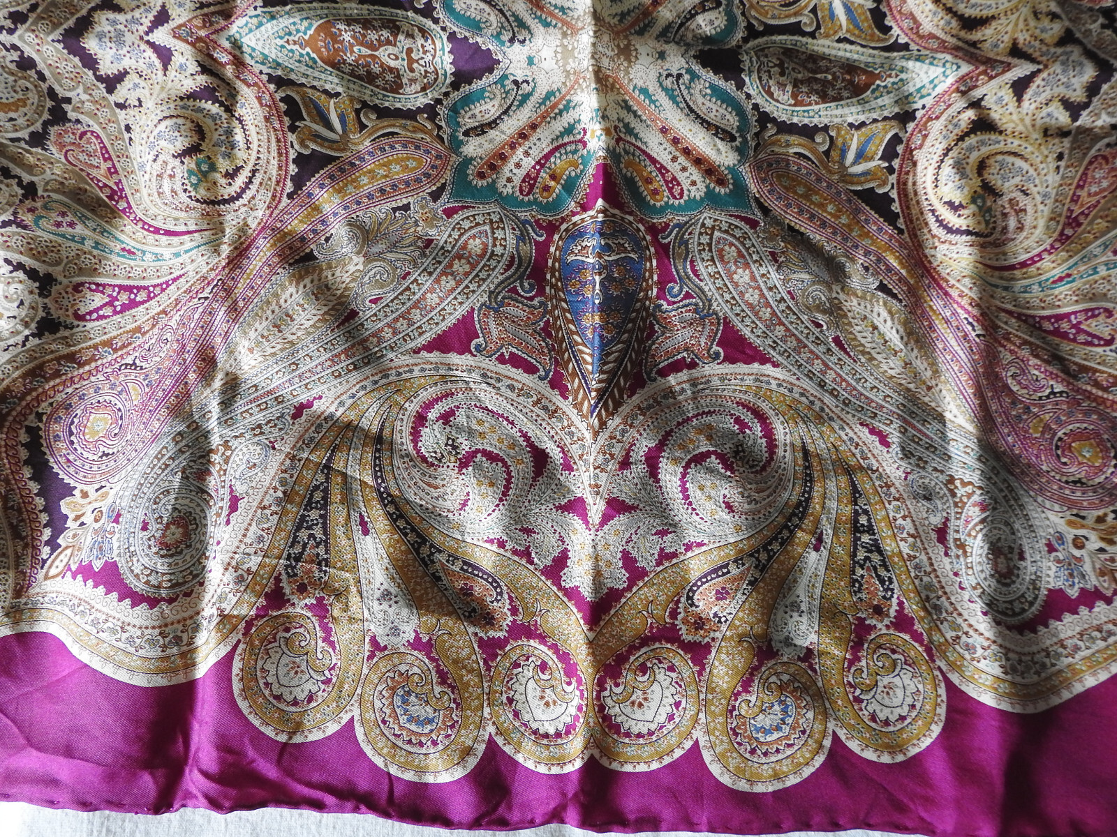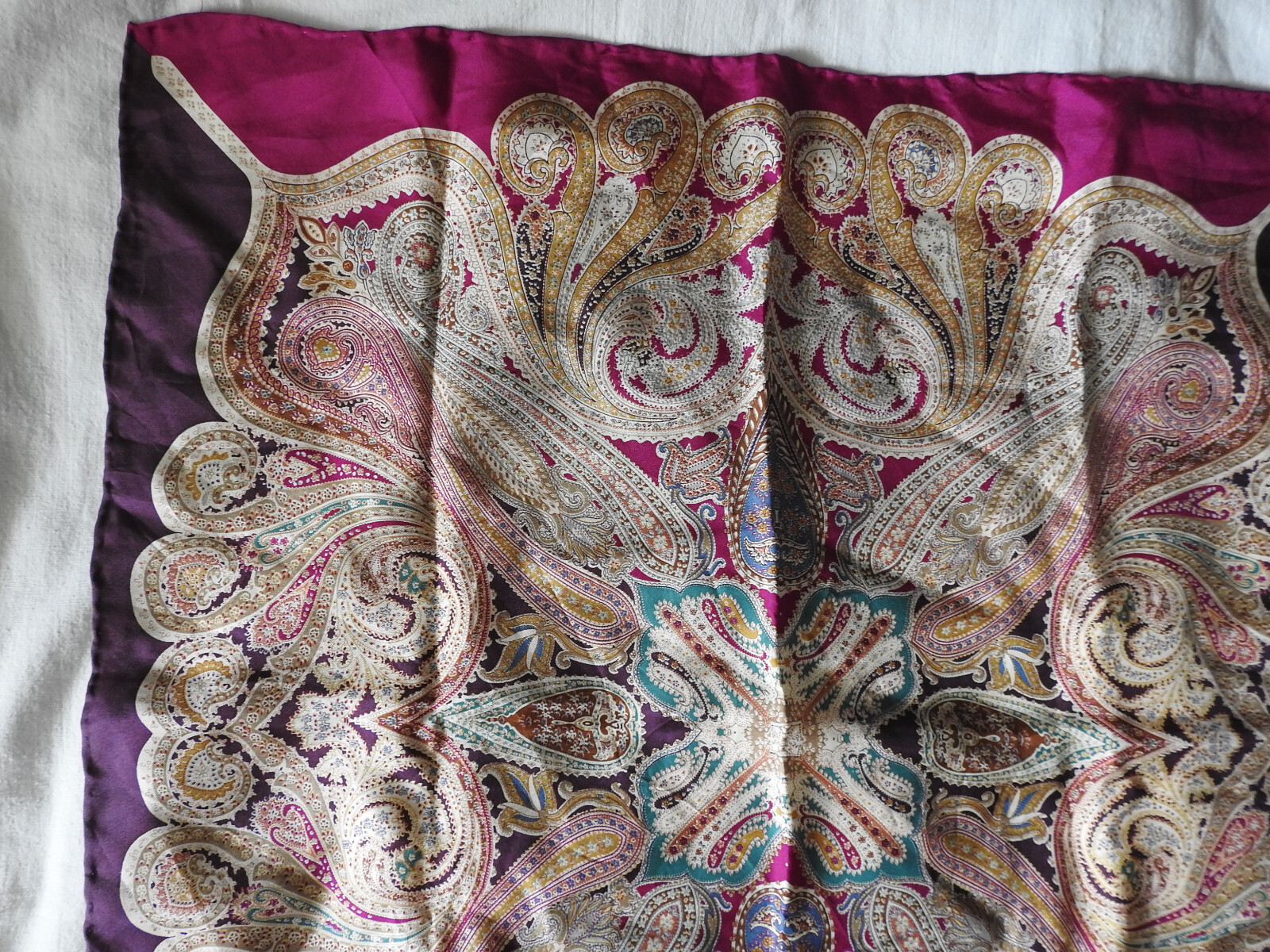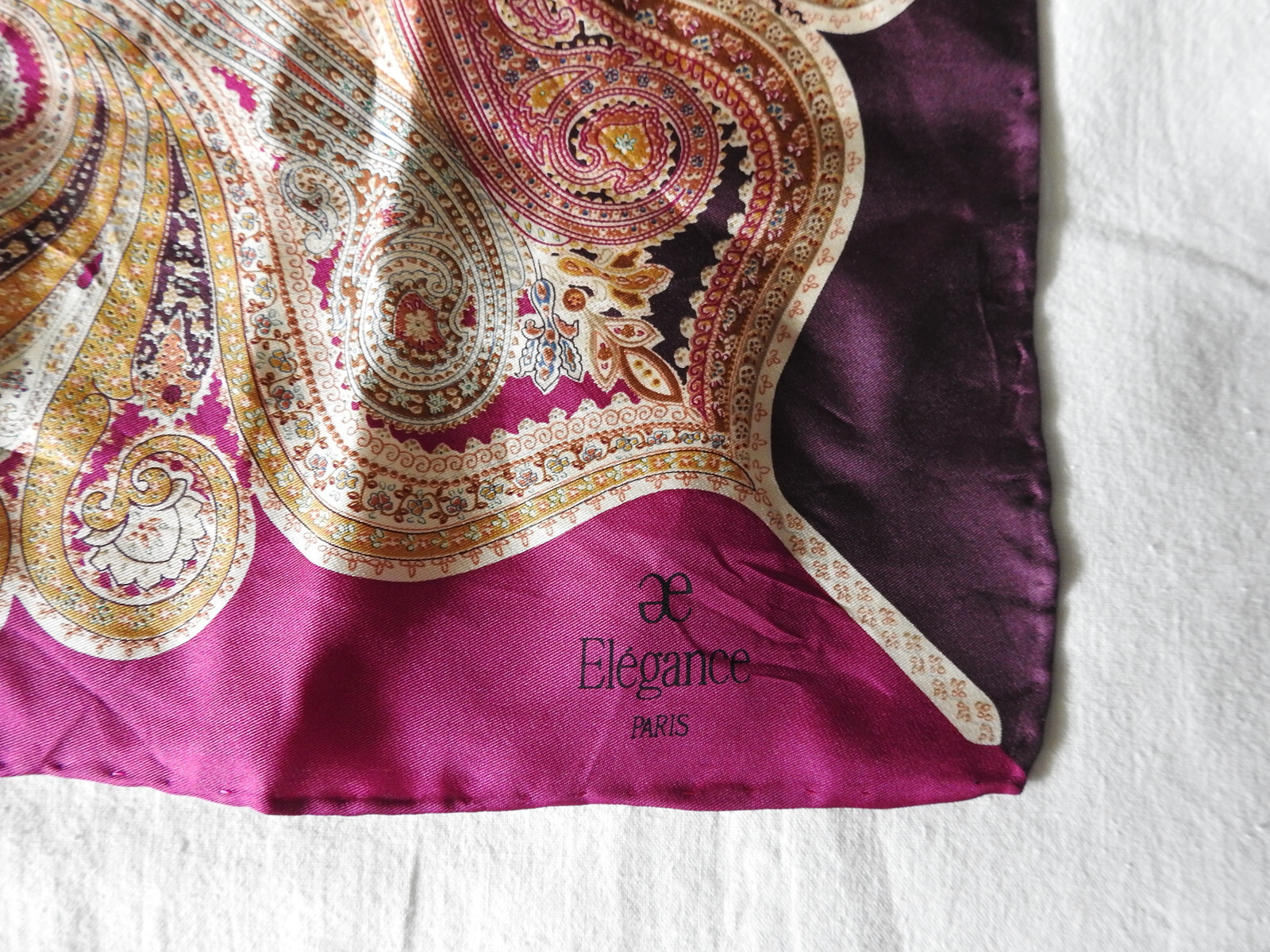 ELEGANCE Paris Silk Scarf Purple Paisley 20.5x20.5 52x52 cm
