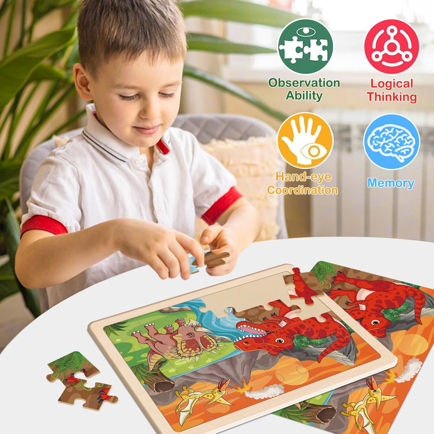 Puzzles for Kids Ages 4-6, Dinosaur Wooden Puzzles, 4 Packs 8.85 x 5.9 inches