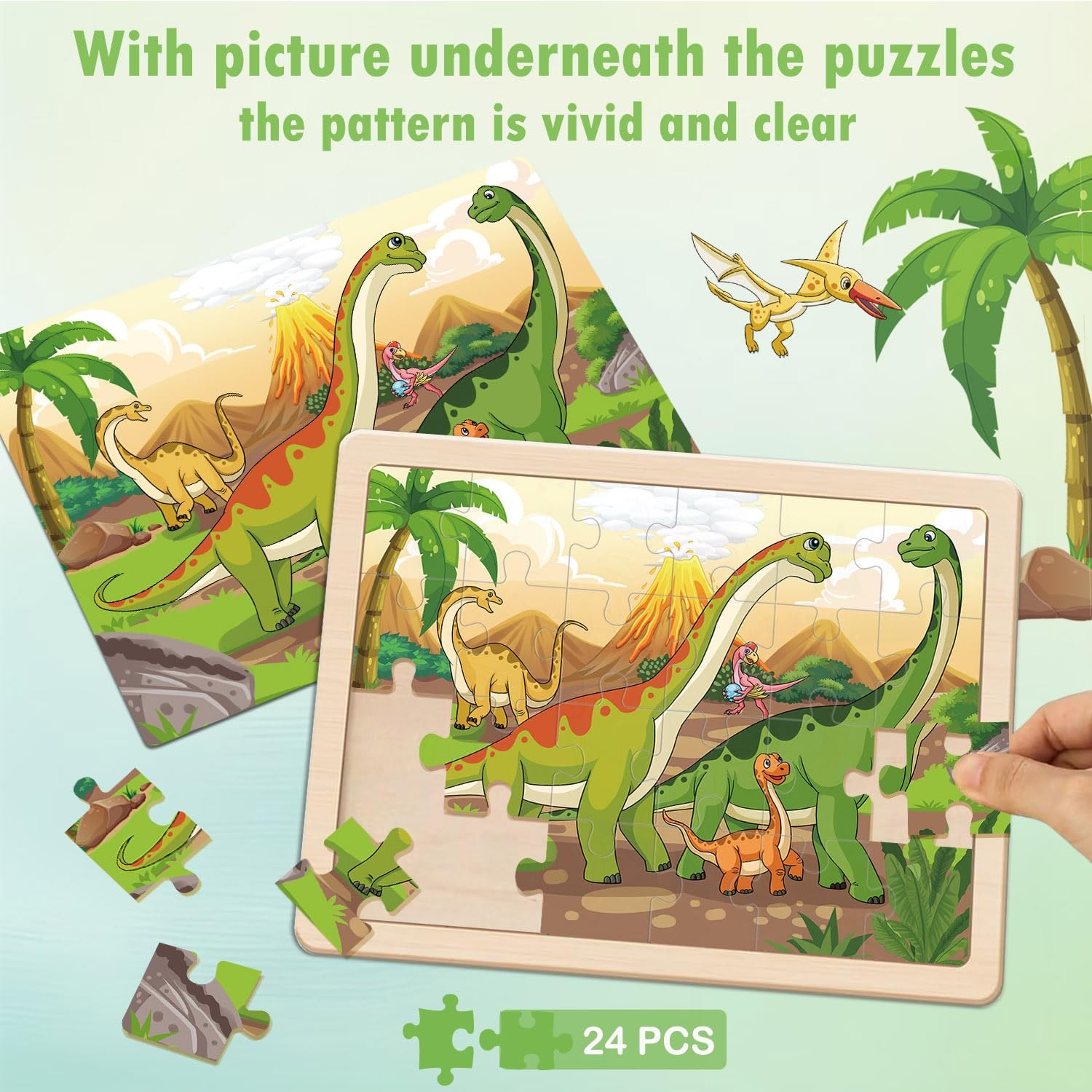 как выглядит Puzzles for Kids Ages 4-6, Dinosaur Wooden Puzzles, 4 Packs 8.85 x 5.9 inches фото